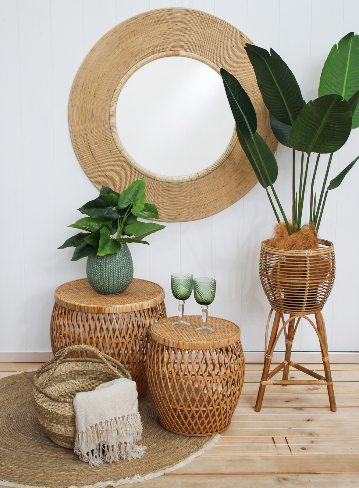 The Mirror Long Island is a distinct visual spectacle with a decorative use that is unlimited. It features a beautiful mirror that is made in a perfectly round shape which measures a hundred centimetres in length and height. Just like an Island which is piece of land surrounded by water, this reflective mirror is also surrounded by intricately patterned rattan craftwork in a round shape. It is left untainted in its natural cream colour. It can be used in the bedroom, living room, and also restroom.