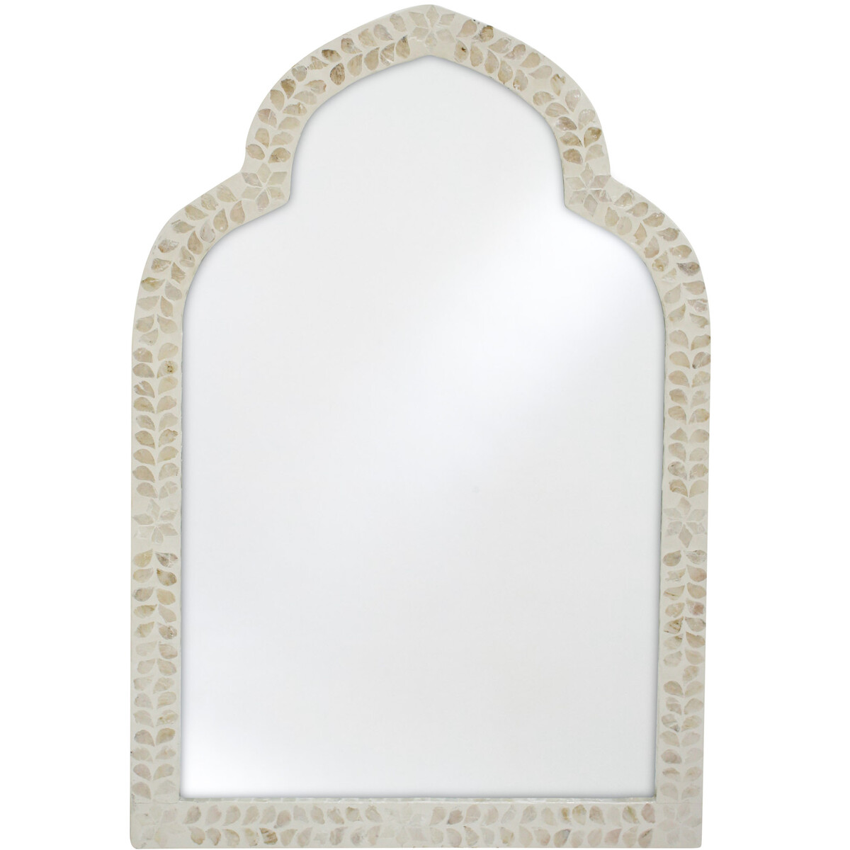 The frame has been crafted from capiz and MDF, the beveled glass of high quality adds to its classic good looks. The size and proportion of this fine quality mirror ensures that you would love to show off its beauty in the living room or the spaces that you use to entertain,. You could help make your entryway feel brighter if you place it right above the console, or use it at the end of the gallery to draw in more light. The 90 cm tall mirror with its arched top and 61 cm width is a great way to help cover a large wall. Aligns well with your love for the seaside and the beach look you love so much! Comes with its own D hooks for easy and safe placement.