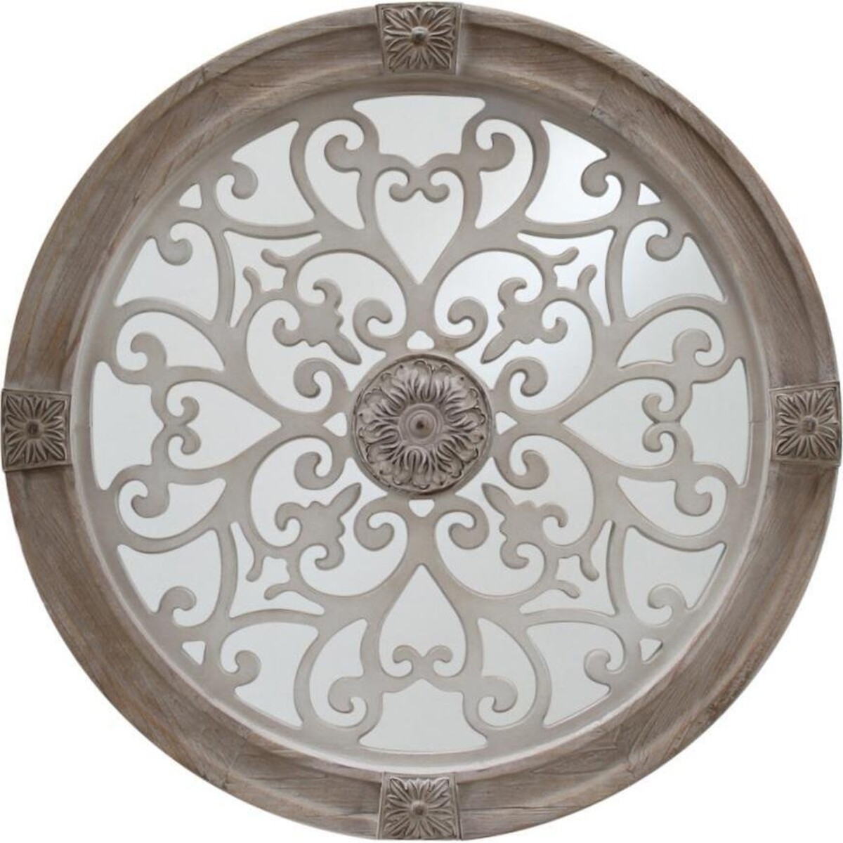 Let light and brightness sashay into your spaces with the beautiful round mirror that comes with a gorgeous grillwork adorning its face. Made from superior quality reflective glass that has been given a face that is ad ornate as a traditional looking décor would need. And yet it has a shabby chic look coming from its rustic and antique details. Will bring in a spot of brightness and draw in the light on dull corners and wall spaces that need a bit more of centring.