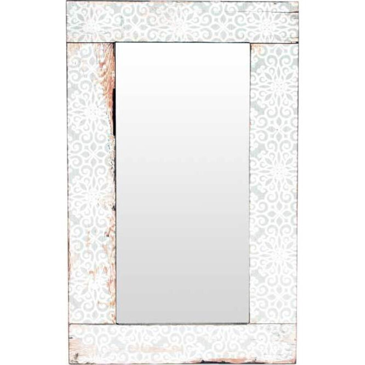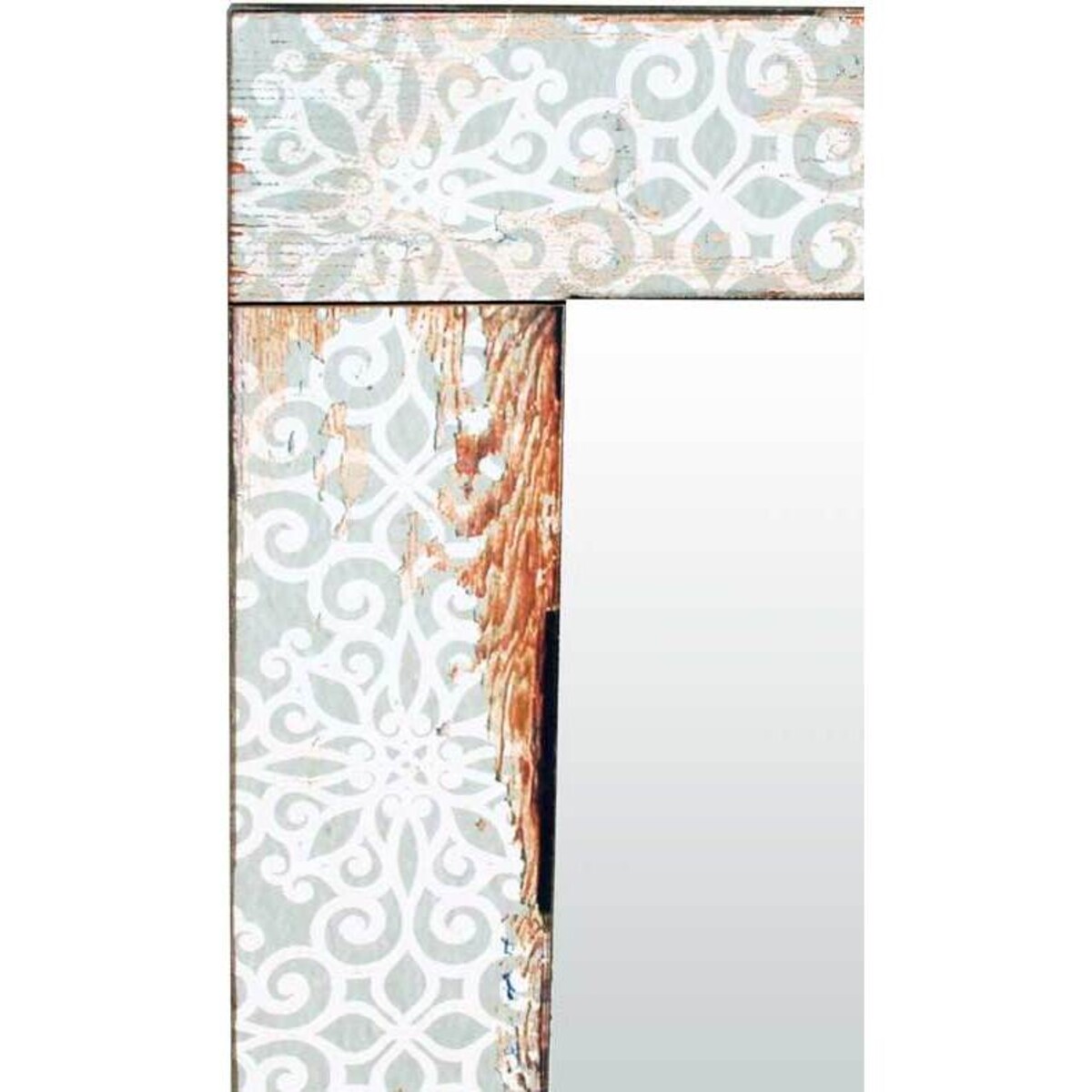 The muted blue pattern on the frame and the peeling paint effect truly look eclectic and if one is to take in the entire look of the mirror it could well be the feature that will dominate the wall yet not impinge on the look of the space. A beautifully designed mirror that is 126 cm tall and 81 cm across in width, it will take up quite some space on the wall and help reflect light and the rest of the decor in a great way thus creating the illusion of more space. A perfect way to build in the look of expanse and style in a neat and non intrusive sort of way as mirrors simply take up space on the wall and do not clutter. The best feature above all is the sturdy make and the superior quality of mirror chosen for this piece.