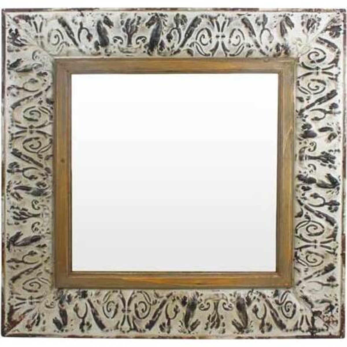 The beauty of pressed metal on the frame and the fine design worked on it s the highlight of this rather exquisite looking wall mounted mirror. Mirrors are an extremely useful way for building a sense of space and they also help in adding a brightening effect wherever that are placed-the manner in which they reflect light makes that space come alive with an extra dimension. This mirror is about 61 cm in length and width and will look as gorgeous in the living room as in the bedroom. The frame will add an antique touch to the interior that already possess a classic theme .Mounting the mirror would be simple as it already has slots on the back .The inner beading that actually surrounds the mirror gives it an extra definition as does the dull metallic white peeling paint effect frame. A great buy for those who want the focus in the interior s to remain sophisticated and want an extra bit of brightness.