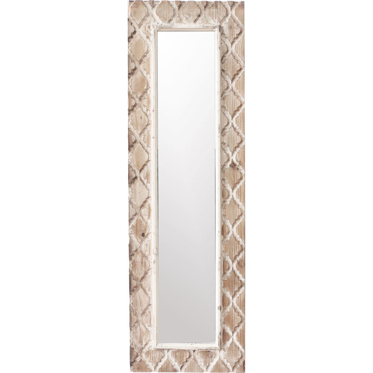 Bring in the joy of more space and brightness into your interiors by placing this gorgeously designed mirror that has an intricate design on the frame and adds a certain allure of antiquity to the space. This long mirror is narrow and thus will take up very little space on the wall but will add so much brightness and style to it. The frame has a typical antiquated quatrefoil design with a little gloss of polish and the intricate design can make the space get an ornate feel that will add as much to the décor as it will work fabulously as a décor accent. Whether in the living room or the living room and the bedroom, there would be so many places in your home that could do with something as attractive as this piece. It is a 136 - cm tall mirror it has width of a mere 43 cm. The frame is lightweight yet sturdy and will be easy to mount of on the wall.