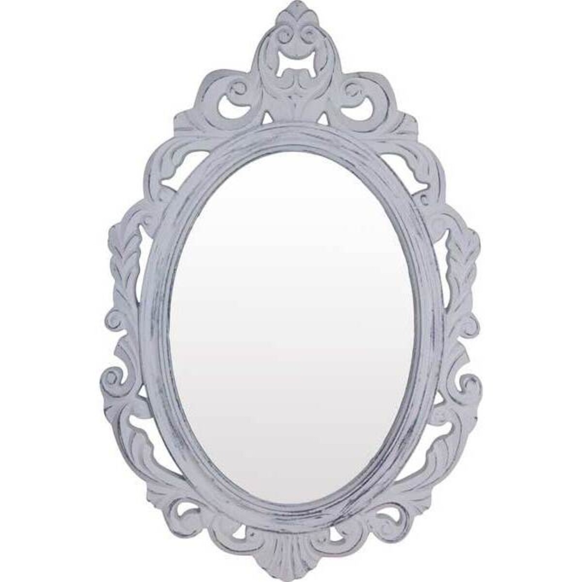 The Mirror Raphael White from LaVida features a distressed white finish with an abundance of rub - through for added vintage character and shabby chic style. This tall, oval mirror features a carved, wooden frame abundant in detail. The openwork design is embellished with swirls, flourishes and even a seashell accent at the bottom. The white finish features areas of exposed wood, highlighting the details in the carving. This mirror would make a lovely addition to almost any space, but would look darling in a young lady's bedroom, as an accent to a powder room or hung over a dressing table or vanity.