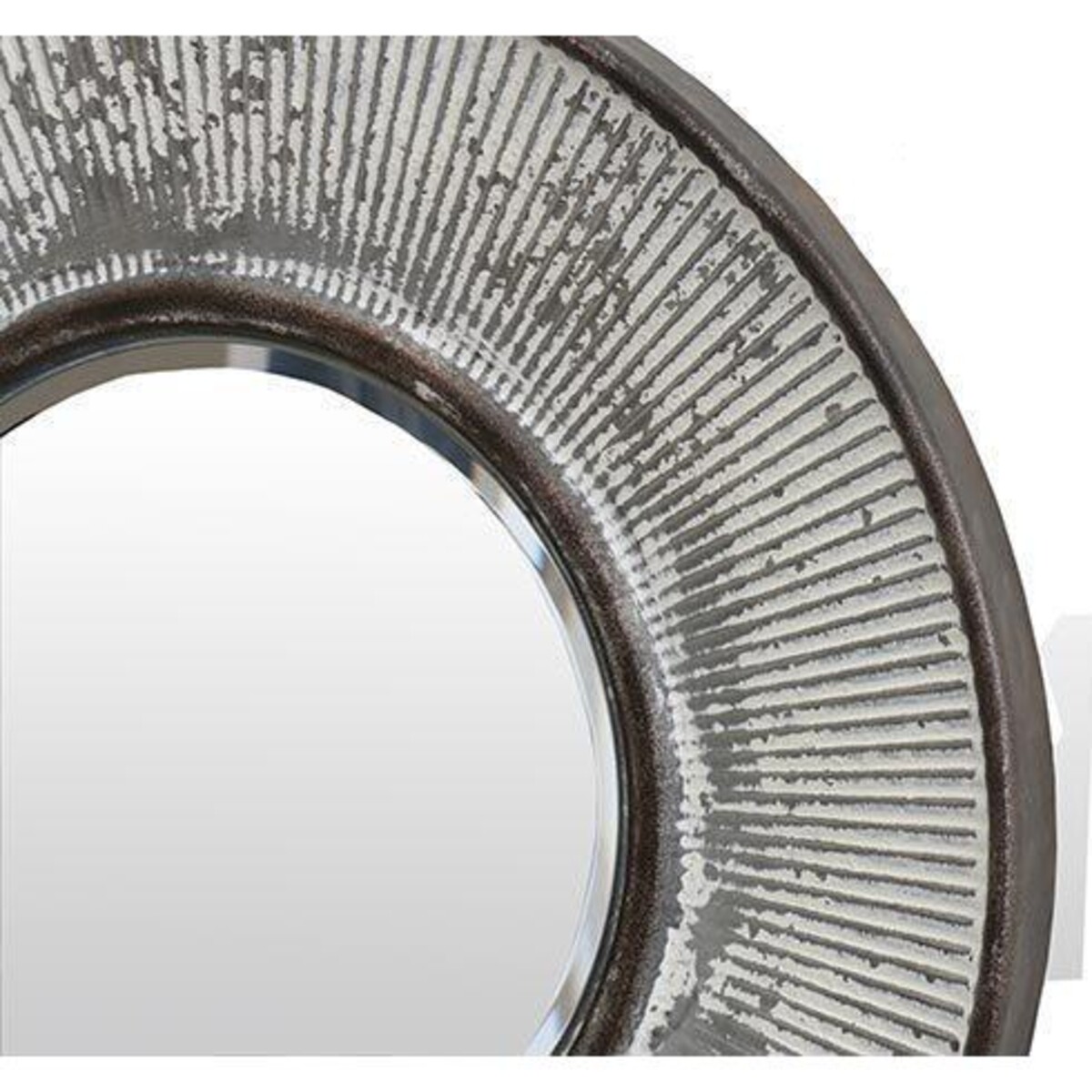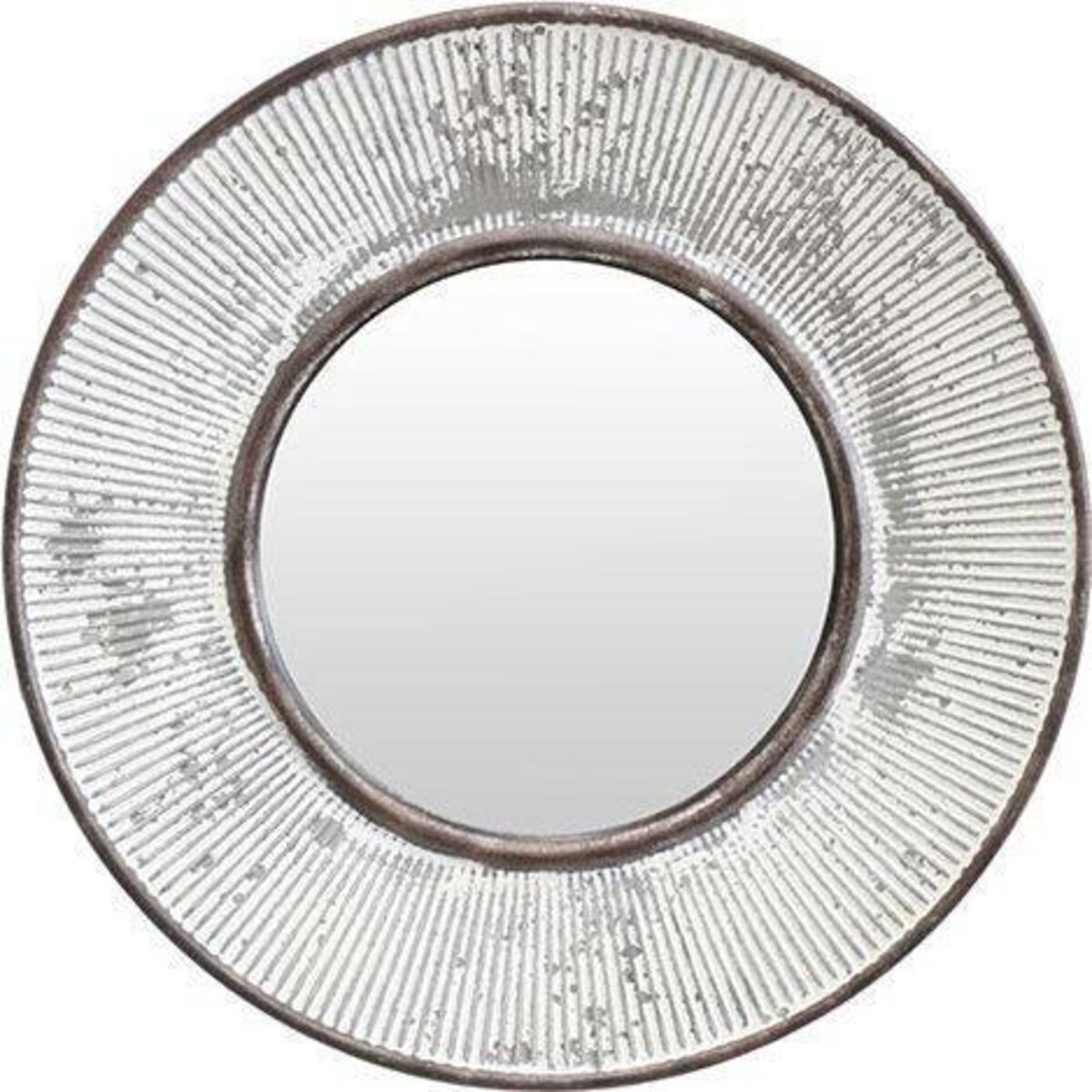 Mirrors build in brightness and the dimension of space undergoes a huge change depending of course o where the reflective surface has been placed. This round mirror has a broad rim that has shabby chic markings making the impact quite profoundly. The metal has been given an adequately high dose of distress finish to build in a certain antiquity of looks. The round mirror also bears the look of class and a certain amount of classic style that comes from the vintage appeal that metal creates. The broad rim has delicate thin ribs running from the inside to the outer edge - intricate and very well defined. The 68 cm diameter mirror would dress up nay wall in the home, be it the bedroom ,t he children's room, the entryway or use it to brighten up those spaces that are a little cramped and could do with extended feeling of space. Would be suited for all décor styles be it modern or retro classic.