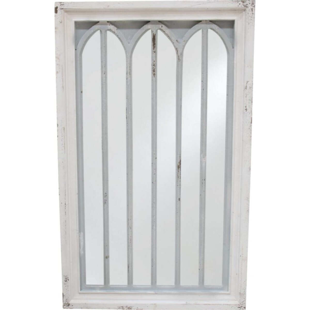 Mirrors are fundamentally meant to help you see your image in clear manner, and yet when it comes to décor, they add a bright spot as they capture light from even the farthest of source. It is this attribute that helps build in the feeling of spaciousness. Apart from getting all of these from this mirror. You will be glad to see the beautiful design it has that makes it truly classic in every aspect. A metal panel inserted all across the length and breadth of the mirror lends it a design element most interesting. Painted in white. Distressed and antiquated, the mirror feels more like a well - crafted art piece then a simple reflective glass. The white coloured outer wooden frame and the arched metal insert superimposed on it. Coordinate perfectly. The peeling paint and the rugged wood look like they have seen better days and are now happy in the knowledge of their age.