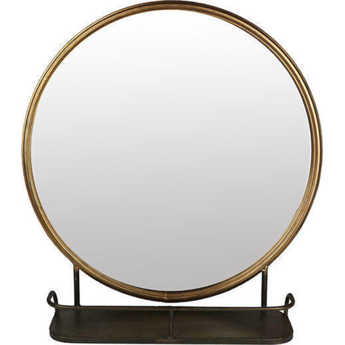 Having a mirror placed in convenient places in your space help make dressing up so much easier. The mirror rondo has the most conducive design that could easily get subsumed as much in a chic modern space as it would in a classic all traditional look area - as it has the touch of metal glamour added to simple lines. It is this which makes it such an elegant addition to your spaces. It comes apart from the simple design - along with a tray which could hold your toiletries or makeup as well. The round rimmed mirror will give you completely distortion free images. The mirror is slightly elevated from the base and the small shelf makes the design all the more compact and user friendly. Can be placed on the wall or placed on a pre - existing furniture. The total height of the mirror is 53 cm while its width in al is 51 cm. The depth of the mirror is all of 15 cm making the shelf a minimum of 10 cm wide which makes it amply spacious for all your essentials.