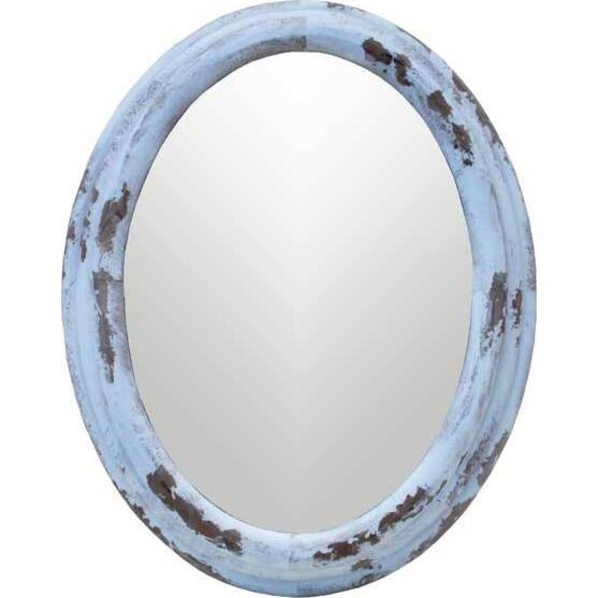 This oval shaped mirror features a white multi-tier frame that's weathered and worn to give it an aged look as if it's been plucked right from the shelves of your grandmother's attic. Let everyone think it's an expensive antique while we'll keep your secret about how little you actually paid for it. This piece would look best in a room that's decorated in a coastal or rustic style, and whether you put it in your living room, bathroom, or bedroom, it's sure to be your new favourite decorative accent.