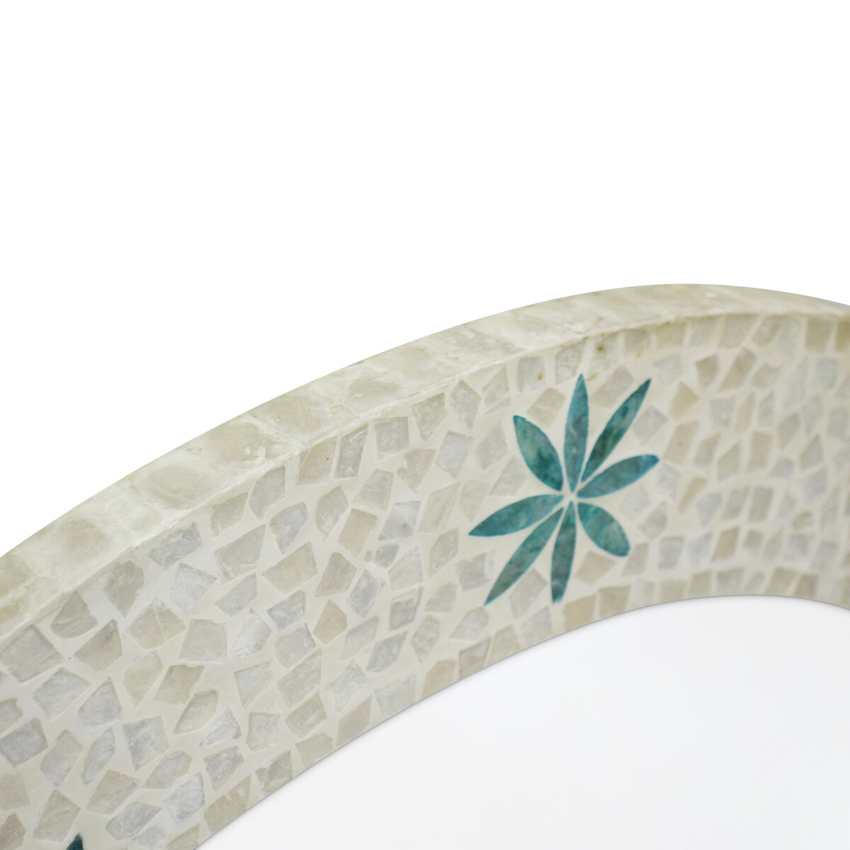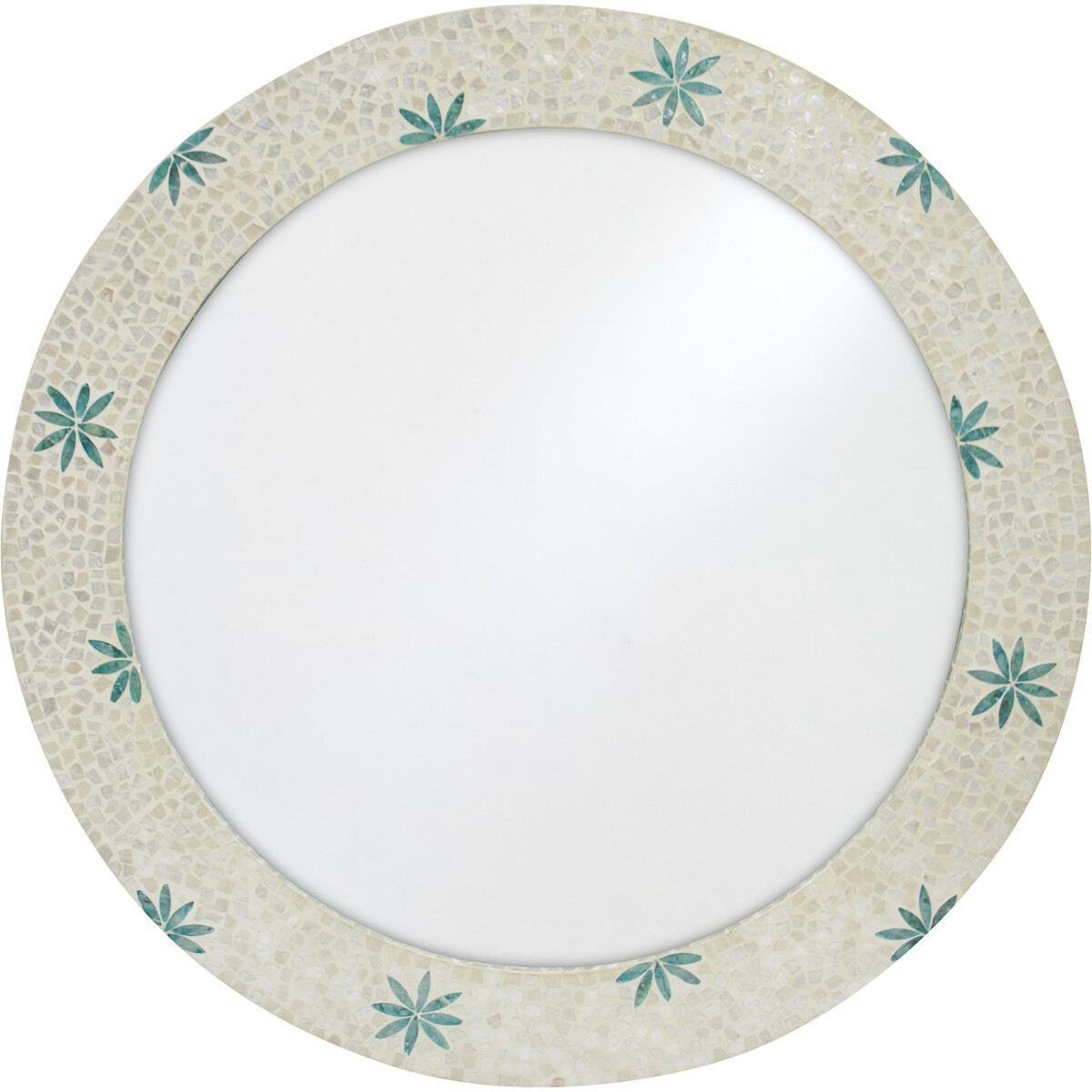 This one really stands out - our Mirror Round Daisy Pop - a stunning piece that’ll bring a splash of colour and freshness to any space. We think it’s perfect for shop owners looking for something a bit different, especially those working with customers who want to create bright, cheerful rooms. This large round mirror - measuring 90x2.5x90cm - features handcrafted daisy motifs made from Capiz shell on sturdy MDF, framing the bevelled mirror beautifully. They’re all handmade, too, so each one is unique - sometimes the finish or detail will be a little different. But that’s kind of what makes them special.