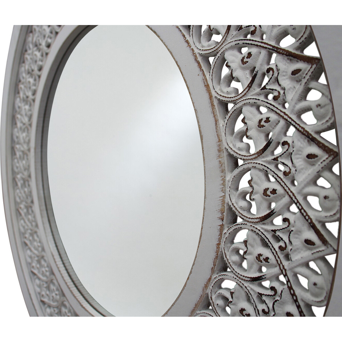 Beyond just designed to add decorative touch to an interior, mirrors are also a perfect solution for making a space brighter and larger. A pair of these Mirror Round Lace will bring a sense of balance to a neutral living room design. It also adds interest to an original mantel in the master bedroom, especially when accompanied by flower decorations. You could use it to tie together a gallery of wall photographs by positioning it in the middle. It can also serve as an accent over a cabinet. How about using it to welcome guests into the home by positioning two or three directly by the door, so they see themselves as they come in? It could also help for some last - minute sprucing before you