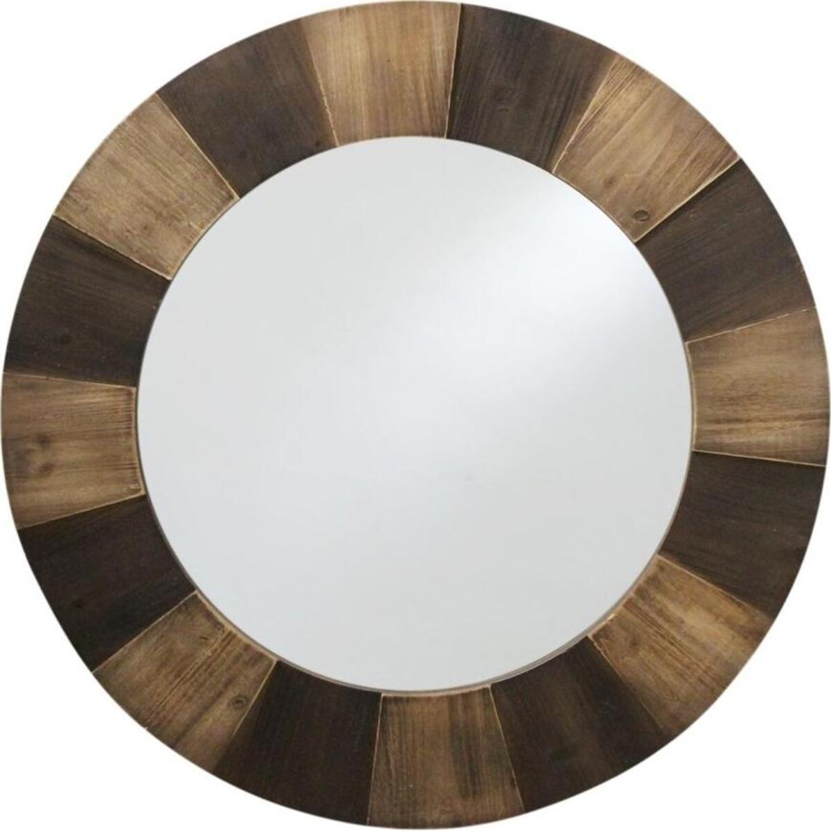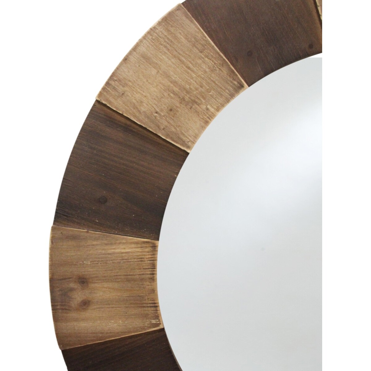The round frame is made of two tones in wood. The lighter brown getting off set by the beauty of the darker hued wood. Both extremely weathered and classic in its finish, the mirror frame has been given a wonderful smooth finish that lends it the kind of look to fit I with all kinds of space, formal or informal alike. The visible grains of the round frae makes the appeal very rustic and in some ways marine and cottage as well. The very look of wood always brings association most fresh and warm, of meadows filled with flowers and lazy afternoon naps - unlike more modern and minimalistic looks, wood touches the space with a homely kind of warmth and while it may just be a mirror the touch of well - crafted artisanal quality seems to elevate its look many times over. The diameter of the mirror is 91.5 cm making it a 3 feet wide mirrors bound to make quite a profound impression with its presence.
