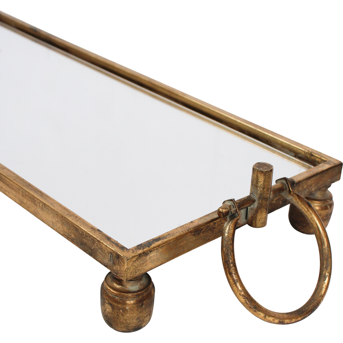 Crafted in a long, rectangular shaped form, this Mirror Tray is made in a lovely dimension which measures 80 centimetres in length, 25 centimetres wide and 3 centimetres in squat height. The top of the tray features a reflective surface made through the use of premium quality glass material. While its edges is framed through the use of durable metal material including the rest of the tray's body. The tray stands on four sturdy, squat stands and even has an ergonomic handle on either ends of the tray.