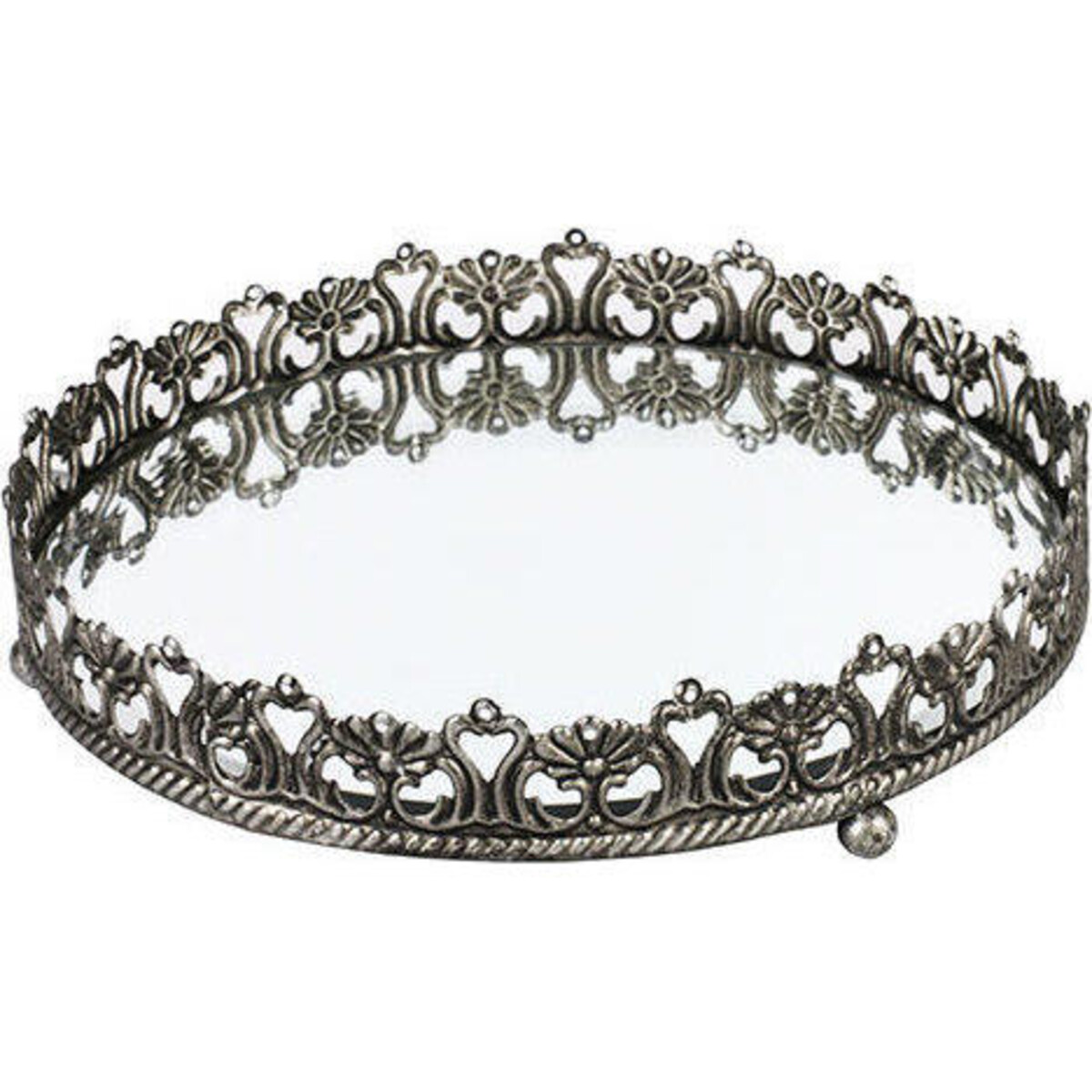 Make the most of reflective play when you place twinkling votives on trays such as this. The antique look and the modern angle of mirror play out their own seamless kind of design aesthetics while the lighting you had hope for would be truly dramatic and more. Could be placed in spaces where you wish to create a more than usual décor highlight. Use it as part of centrepieces or coffee table settings so as to make your special occasions light up with a different kind of warmth of beauty. Made from metal and glass - right from its proportions at 19 cm diameter to its tiny round balls that are like little legs, each aspect of the piece is carefully aligned to your need for something more than the usual for your home and spaces. The tray is about 4 cm high and the raised rim assures you that while carrying it from one place to another the candles or votives on top would be safe and secure. When not used as a tray for candles, you could switch its roles for serving finger foods and the likes. The rim allows one to get a good grip.