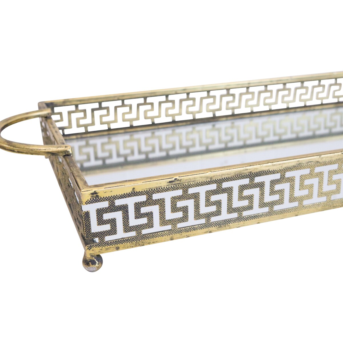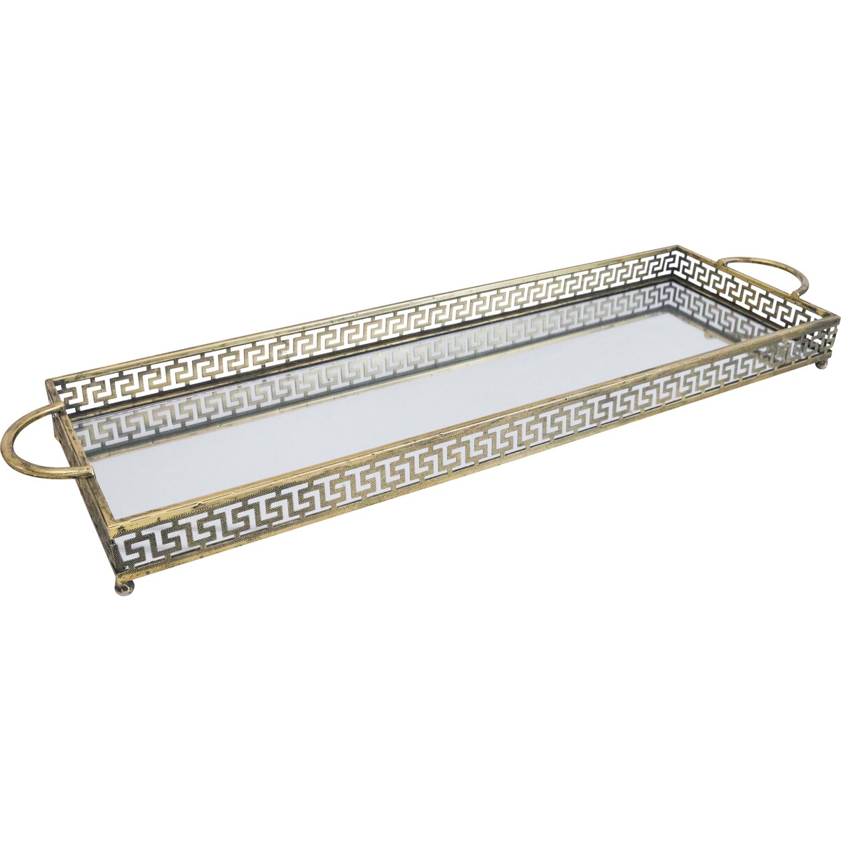 We’re really quite taken with our Mirror Tray Grecian Extra Long - it’s got that perfect balance of striking design, a real sense of grandeur, and genuine, practical function. It manages to tick boxes we didn’t realise could even be paired. Crafted from metal with a mirrored base, that Grecian patterned surround stands out in b’’ - it’s both bold and classic at the same time.