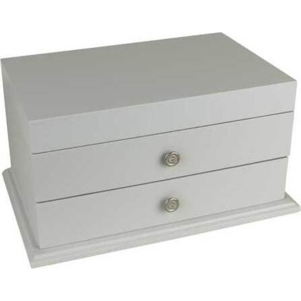 Jewelry boxes area an important aspect of keeping your personal belongings safe and within reach especially if you are an ardent collector who has innumerable small pieces that do tend to get misplaced or unavailable when you need to wear them most. That indeed can be quite frustrating! Here is simple solution from Lavida in the form of a chic well designed jewelry box that has tow well designed shelves the top that has cushioned long columns for placing rings and four smaller square compartments for keepings earrings, and the lower shelf which could be sued for all kinds of larger jewelry, be it bracelets to watches, they would all find a safe haven within his shelf. The height of the box is about 17 cm, its length is25 cm and width at 20 cm makes it compact yet adequately spacious for a large enough collection. The colour is sea grey, sober and classic - making it quite an accessory for your dresser or vanity.