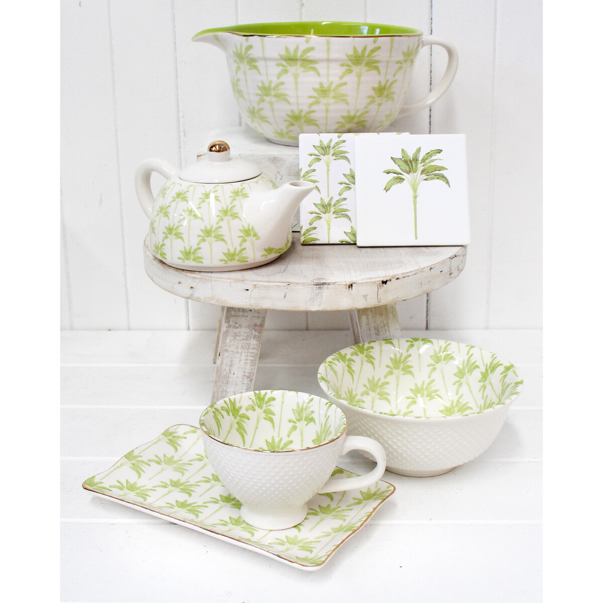 Add a touch of elegance and poise to your kitchenware and baking time with this beautiful banana palm print mixing jug. Made with the highest quality porcelain, this printed jug with beautiful hues of green and white elevates your spaces and makes them calmer, adding a touch of vintage to your space. The retro inspired design adds a country vibe to your modern Australian home. A versatile addition to your home, this mixing jug can either be used as everyday cookware or as a statement piece of decor for spaces like china cabinets and walkways. With its beautiful print and dynamic use, this banana palm print mixing jug can also be given as a thoughtful gift to your near and dear ones to show them how much you care and also impress them with your classy taste in decor.