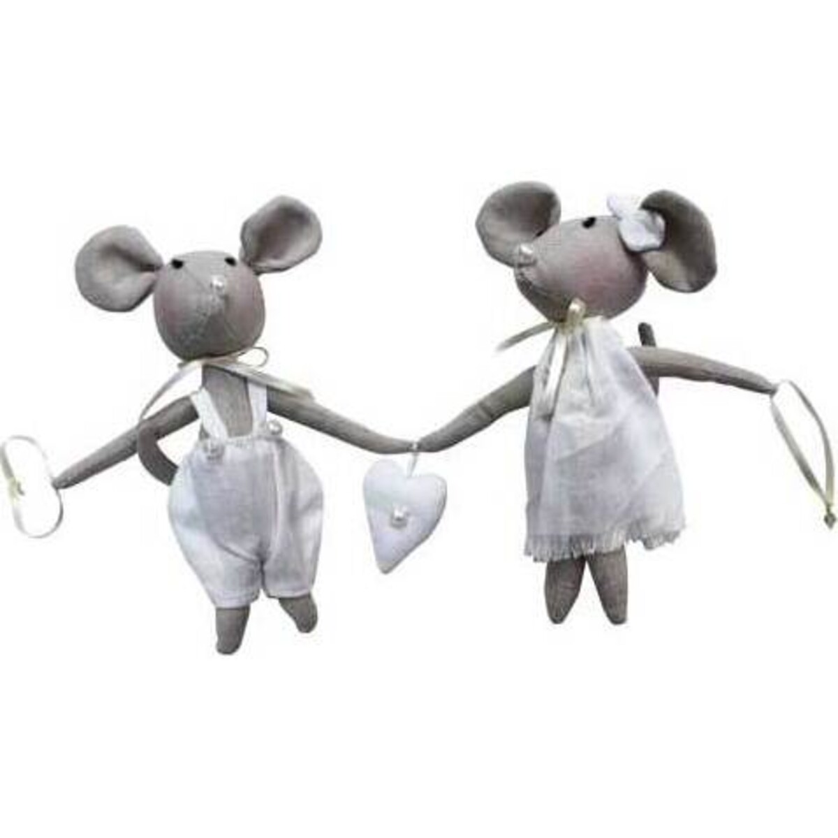 • These adorable mice hand together and hold a heart with a faux pearl at the center.