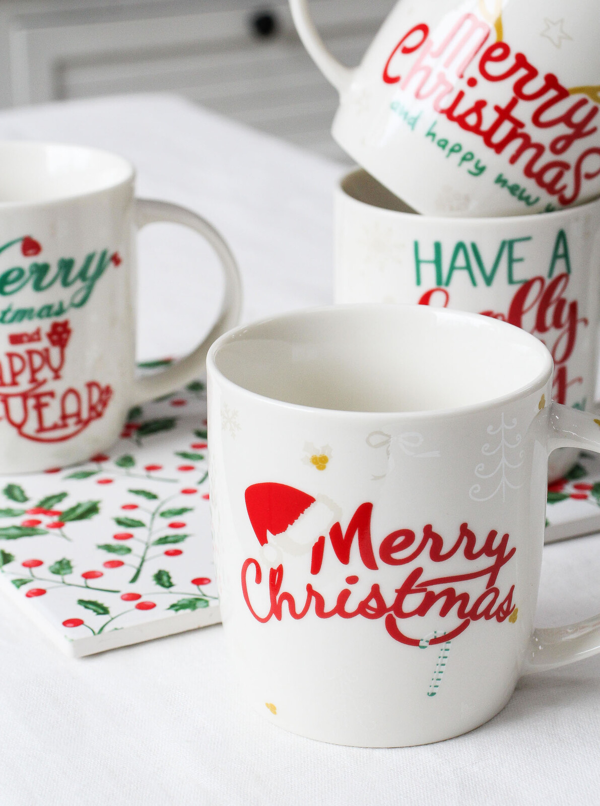 When it comes to serve ware- one never has enough- especially with cups and mugs. This is the kind of an accessory in your kitchen which brings in a sense of cheeriness and adds to the fun of serving a fine beverage. This delightful set of four mugs is made from fine quality ceramic. The handles are curved perfectly to allow you a great grip. Three mugs wish you Merry Christmas while another one says- have a Holly Jolly Christmas. The usage of red green and white instantly connects with the colours of the season. Whether it is hot cocoa, coffee or tea- these mugs will add to the feeling of it being special. 12 CM in height and about 8.5 cm in in diameter, they are not over large and just the size that you could put to use every day.