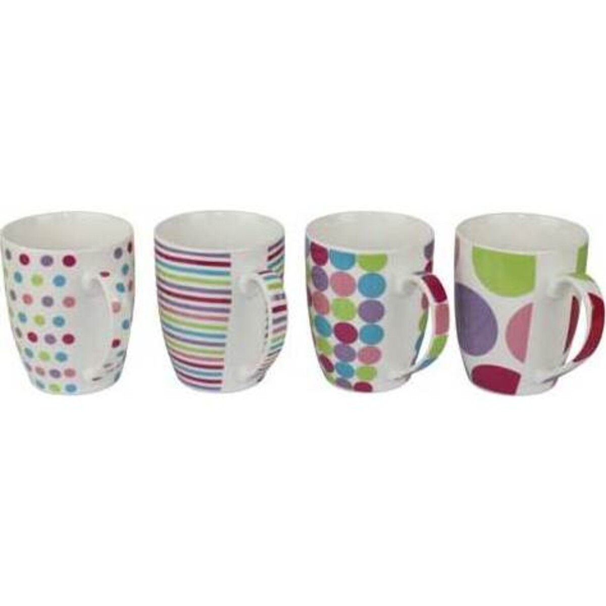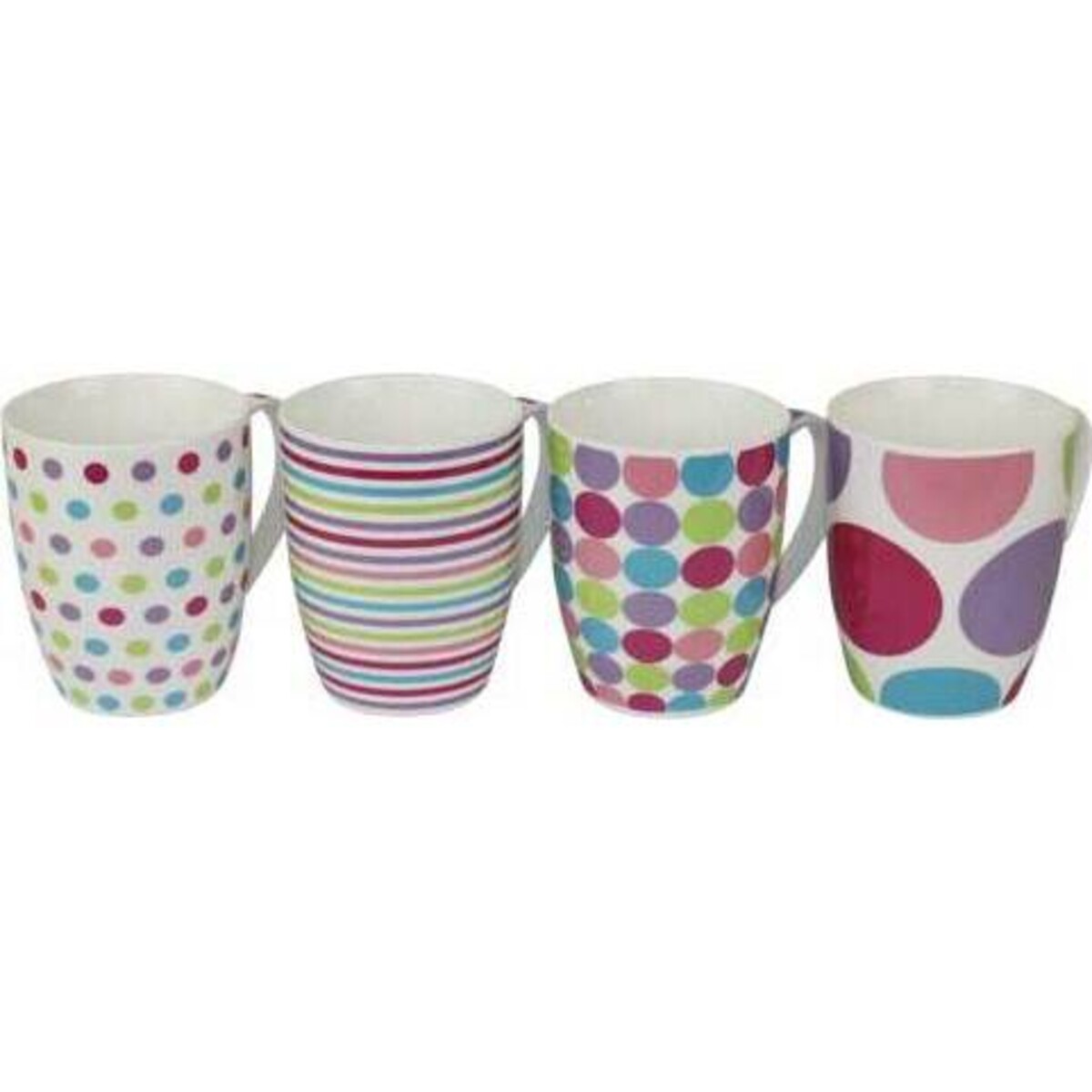 Bring out the cappuccino maker and create some really great buzz around the coffee table with yur friends for company and this set that comprises of four gorgeously designed colourful mugs that have graphics that are cheerful and colours that are carnival bright. Add this happy sort of brightness to your coffee time and share it with friends who love your company and their coffee. The great quality ceramic will ensure that the polka dotted and stripes graphics on the mugs will remain bright and as colourful as ever despite much usage. You will be able to heat your coffee in the microwave and remove stains easily. The mugs look especially great because of the white backdrop that lends is a fresh feel and gives more focus to the dots and stripes look. Each mug has a unique design. The handles are curved correctly to allow easy handling. A lovely gift for your home or for someone who loves his or her coffee hours as much as you do.