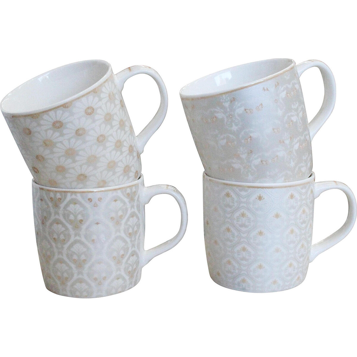 A set that redefines everyday luxury through an everyday use article like coffee mug. Made of fine quality ceramic, it is the kind of mug set you would like to flaunt when your friends come calling and you wish to serve them in mugs that look exclusive. The delicate gold and off - white colours lend it that creamy smooth edge that luxuriates in the presence of gold specks. The delightful set has four pieces in it and at 9 cm diameter and 12 cm height, it is a perfect size that will be a great choice for serving coffee or tea. Each of the four mugs is unique in its design. Create your own hostess set with this exclusive looking mug set from Lavida. The very fine quality ceramic will ensure that the beverage served in it remains perfectly hot and will retain its impeccable print in gold and white and continue giving you that gorgeous kind of company when you need to sip your favourite beverage from your favourite mug.