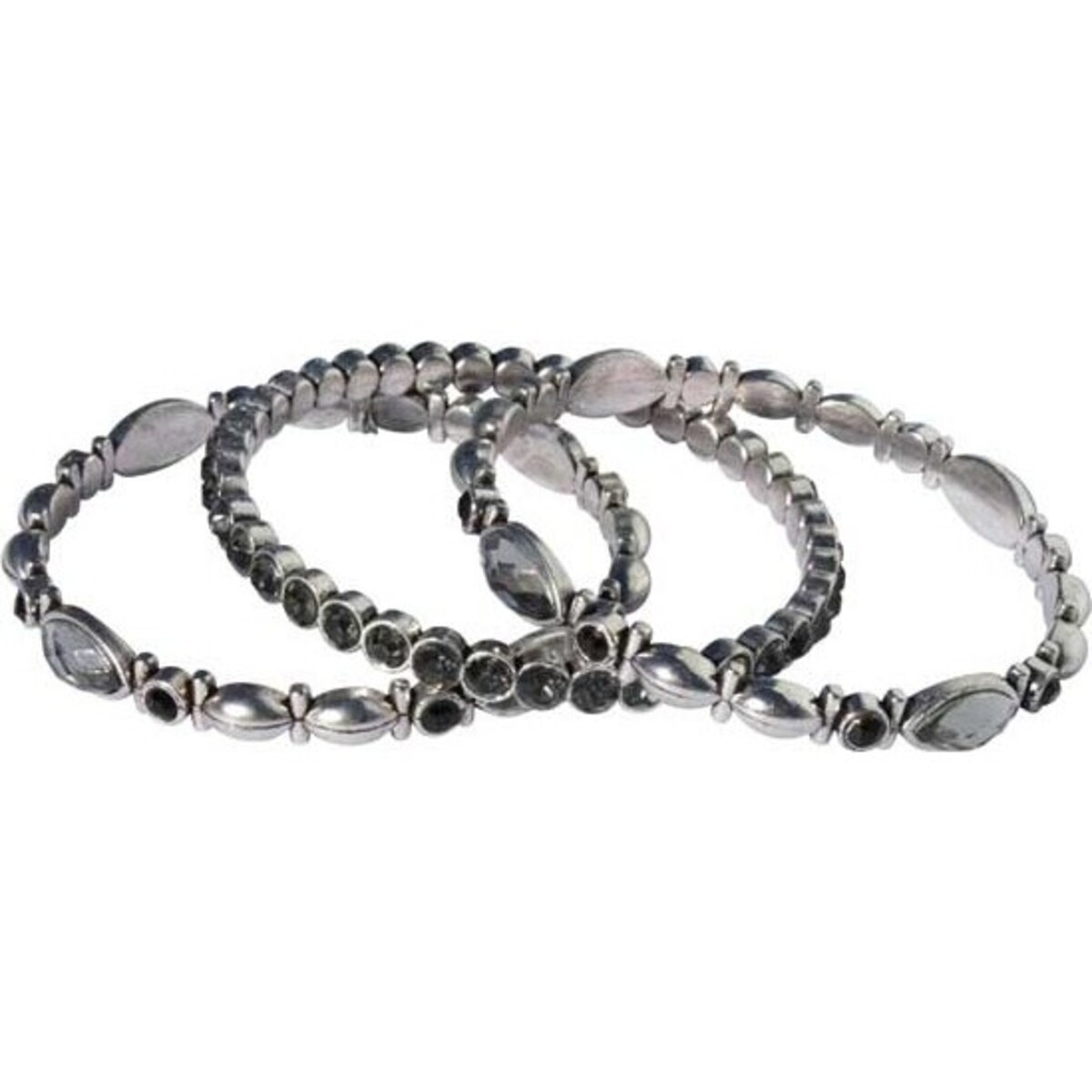 The Multi Bangle - Silver Diamonte Black - set 3 is truly stunning to look at. The amount of detail used by the artist is really eye-catching. This multi bangle bracelet is composed of three individual bangles and each one feature intricate design patterns.