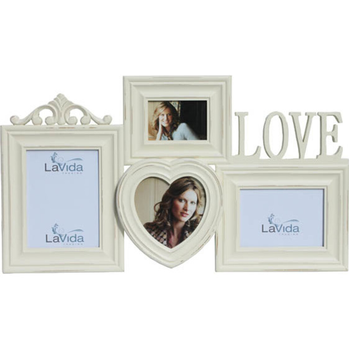 The Multi Frame-LoveHheart Large is an artist's photo frame design with the family in mind. It combines four different photo frames: one medium-size portrait frame on the left, one medium-size landscape frame on the right, and two small photo frames on the middle (a heart shape and a rectangular one). It looks stunning and eye-catching in its snow white colour. The texture is smooth and it has got a polished finish. And on the right side, there is a set of finely sculpted alphabet letters. It spells 'LOVE'. This adds to the 'homely' feel that this photo frame exudes. Given its design, the Multi Frame-LoveHeart is perfect for family photos. It is like a stylish mini album on the wall. Also, its versatile design makes it perfect for both classic and contemporary homes.