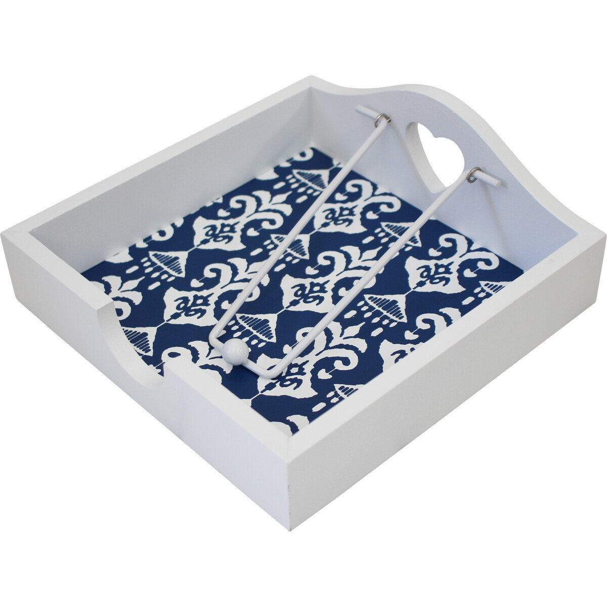 With an interior base which is ornamented through the depiction of oriental floral pattern in a luxuriously painted navy blue and white hue, this Napkin Holder Blue Motif is certain to be a charmer for most of your customers! The surrounding wood which box in the napkins is painted in pristine white palette while at the top part of this wooden frame is the cut in motif of love through the shape of the heart. This love introduced motif makes this napkin holder a suitable gift item both on special festive occasions and as well as everyday gifting sake.