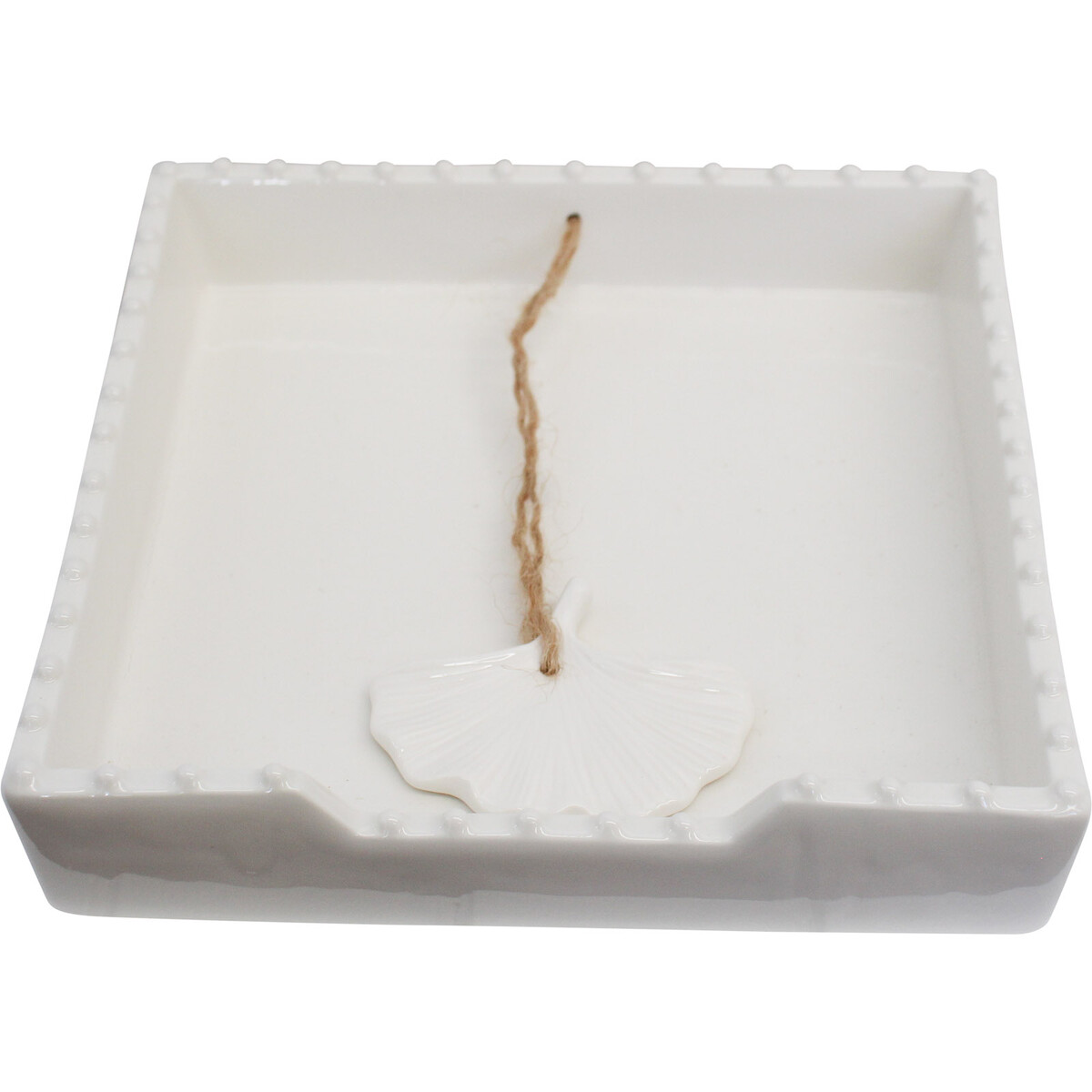 Discover the enchanting allure of the Napkin Holder Gingko, a piece where functionality meets artistry, destined to become a cherished addition to any homeware or giftware collection. Measuring a versatile 19x19x4.5cm, this napkin holder is an exquisite blend of practicality and style. Crafted from high-quality ceramic and finished in a serene, pure colour, it exudes a sense of tranquility that complements a variety of decor schemes.
