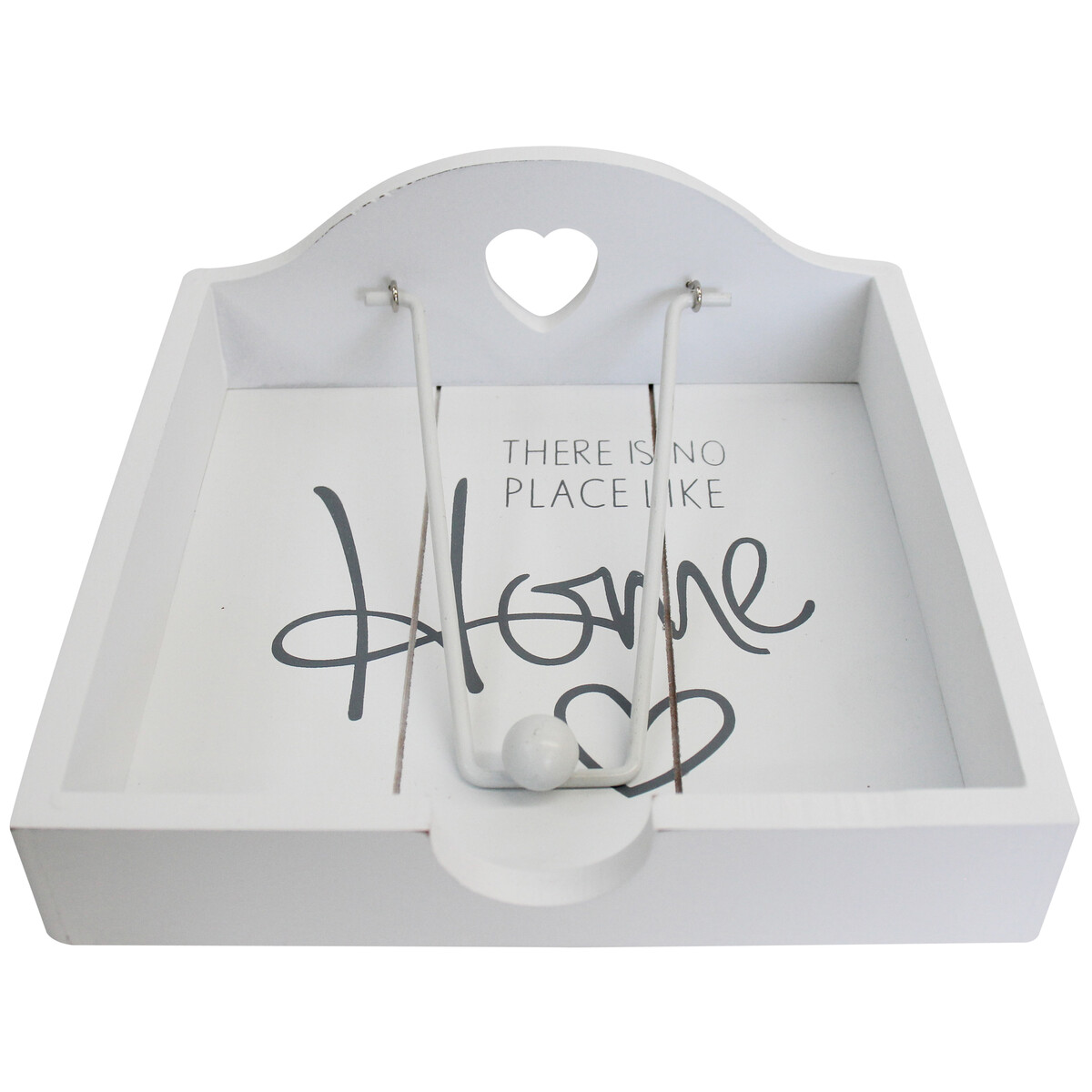 Artfully crafted in a square shaped design which measures 19 centimetres in length, 19 centimetres in width and having a height which measures 7 centimetres, this Napkin Holder Home White is certainly designed to be perfectly functional in holding quite a lot of napkins. But then, apart from its practical napkin holding functionality, it is equally decorated as it is painted luxuriously in pristine white colour while black lettered words are written in the interior of this napkin holder. The words read "THERE IS NO PLACE LIKE Home" and closes off with a love shape drawn close to it.