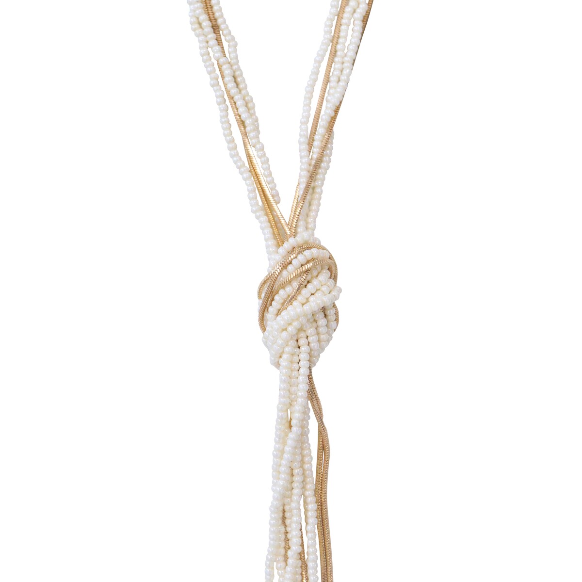 We know customers are on the hunt for accessories that fit into every day or dress up for special occasions and we can see Necklace Daphne being easily styled for both. It complements a broad range of styles too, casual or formal. We love the bit of golden shimmer against that crisp white - quite understated but still memorable.