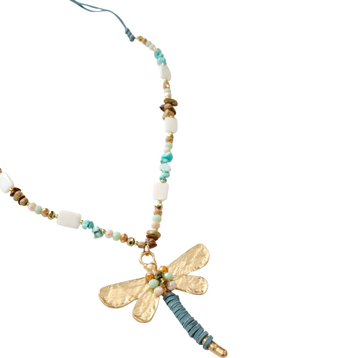 There’s something about our Delilah Necklace that always seems to stop people in their tracks. Perhaps it’s the subtle, earthy tones - with its zinc alloy, glass and stone beads paired perfectly with natural leather. Or maybe it’s the dragonfly pendant that always catches the light at just the right moment - we really did want this piece to feel magical.