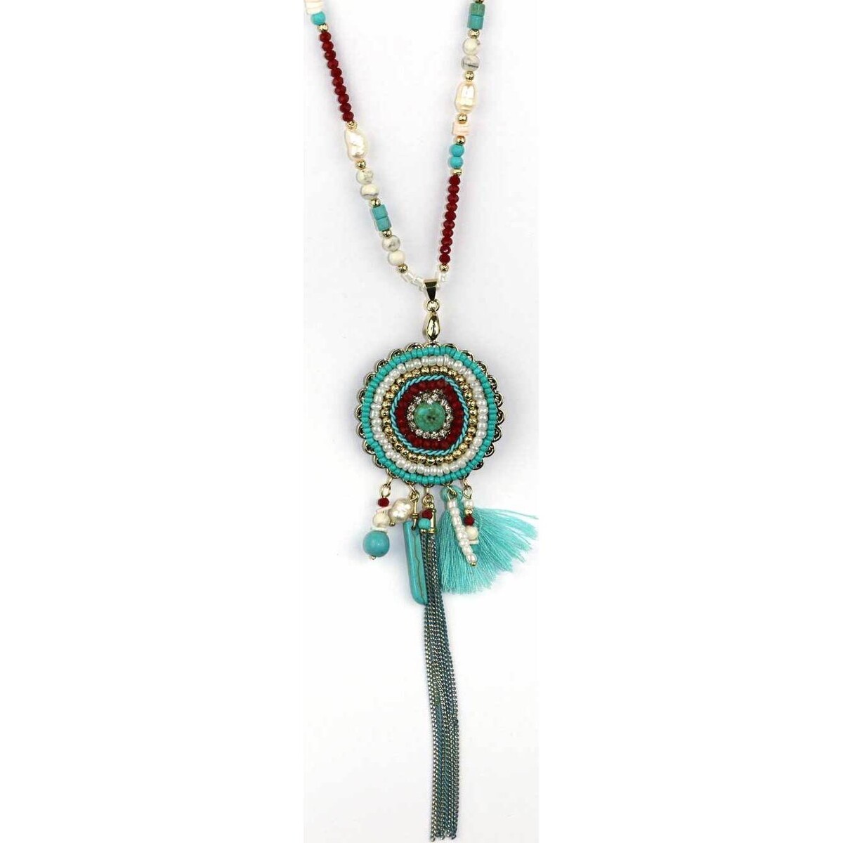 Fascinatingly beautiful, the dream catcher has come a long way from its original cultural moorings in the American tribal culture to the modern day popularity seen in this necklace that replicates its intricate yet simple beauty in the most eclectic of way. Weave your own simple dreams while you wear this and hope that all your wishes do get realized.