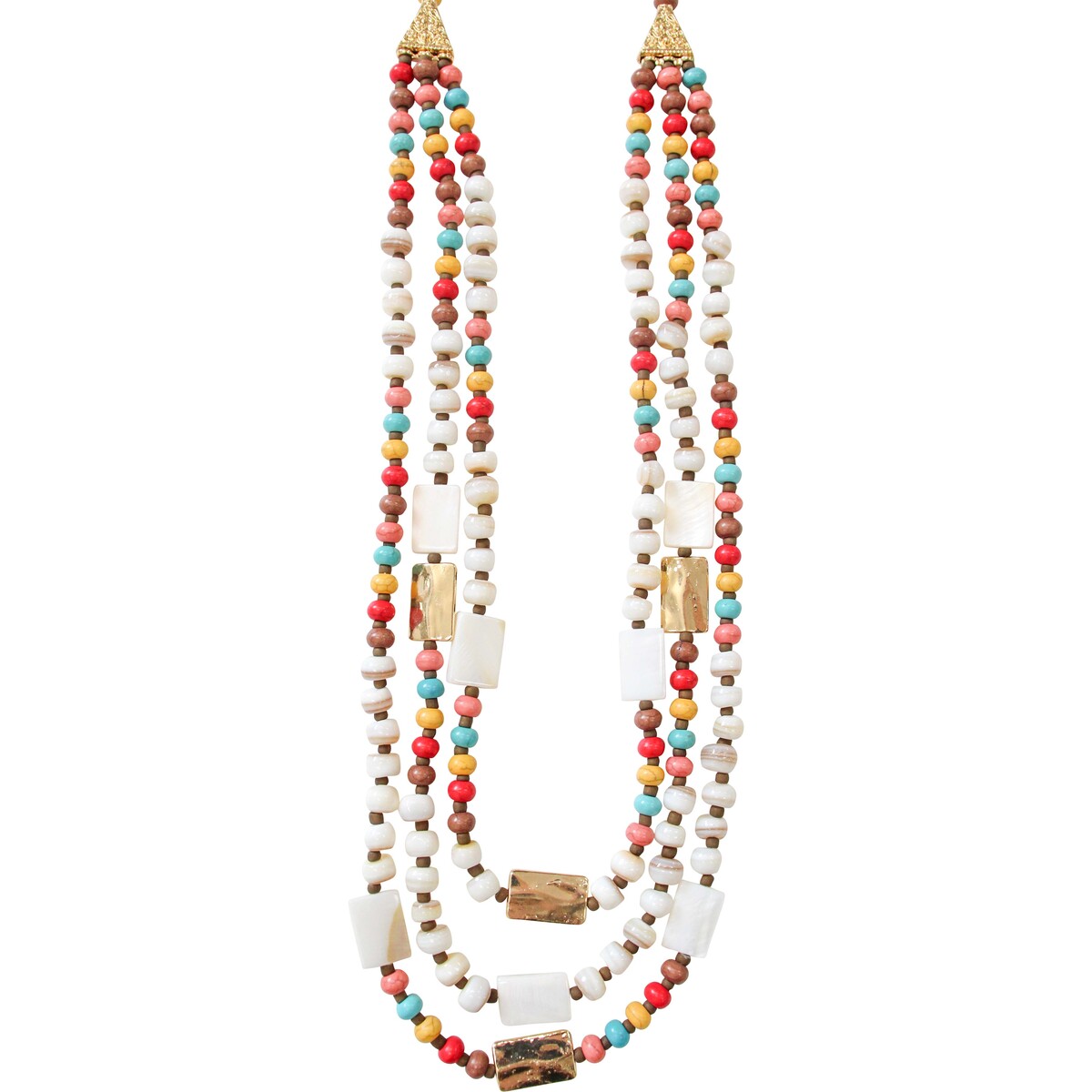 Our Juniper Necklace, 45cm in length with an extender, is a fresh take on the trending beaded look that everyone’s loving this year. We’ve seen how much customers are gravitating towards tactile, statement pieces with a handmade touch. This one’s easy - let’s be honest, it pairs with everything from denim jackets to linen dresses and is just so versatile for so many shops’ styles. The neutral colours, with pops of mustard and turquoise, are meant to blend with coastal looks or bohemian layers and is complemented by bold glass and stone beads alongside shiny gold details. Made from zinc alloy, it’ll feel sturdy and substantial for people who want something different than standard wooden beads or resin shapes. This design’s unique but still classic - it feels a bit one-off even when they’re not. Looks great hung at the front counter for summer. This one’s going to be well loved by everyone - trust us!