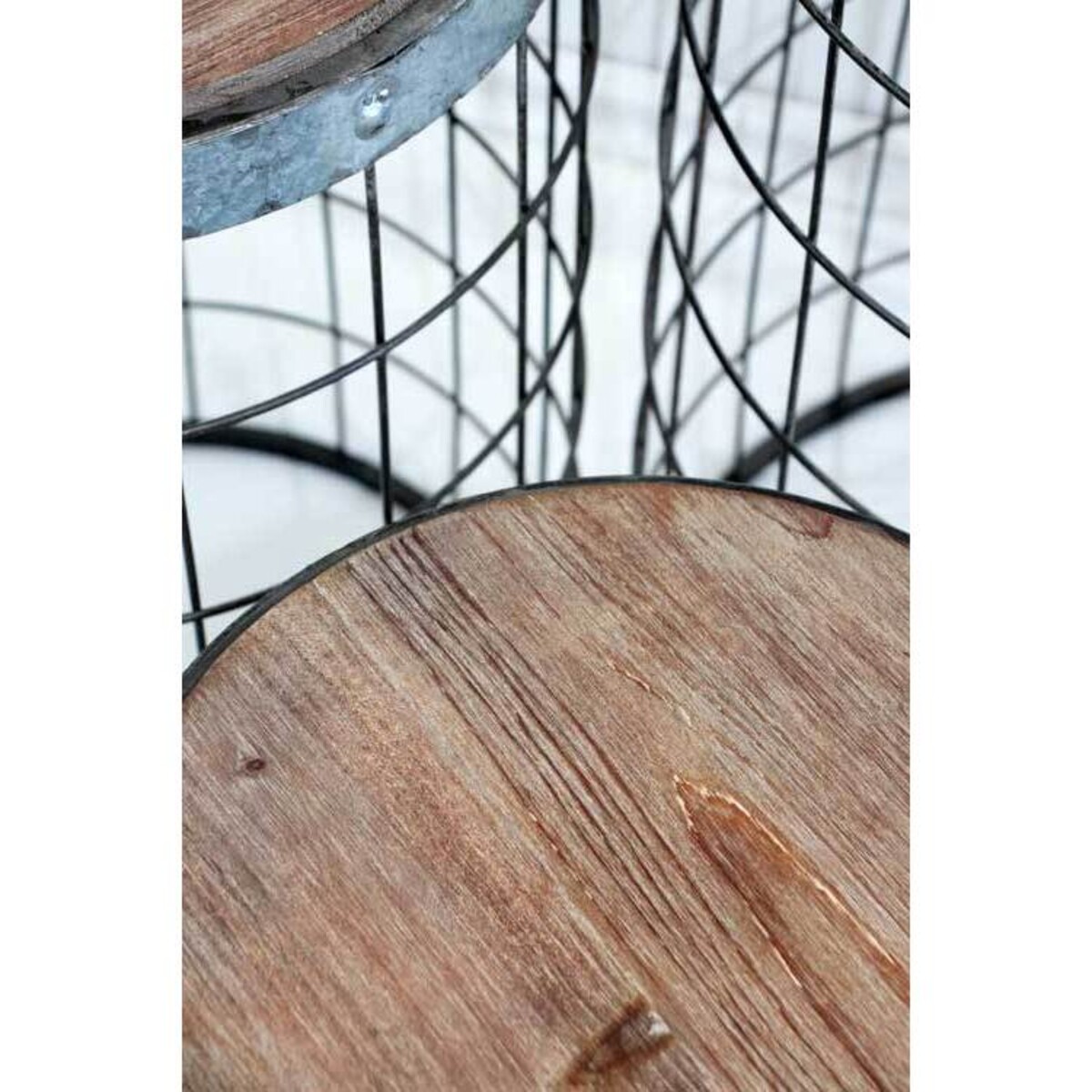 Furniture pieces need to blend in with the overall decor and the theme of the interiors and this set of three nesting tables are more than juts tables - they are high on utility, great on space saving and amazingly elegant and graceful despite their rather rustic appeal. While storing the tables sit nattily one upon the other gracefully hiding one inside its own confines. The tallest of the three is 69 cm in height and the shortest is 59 cm. The round top is made of weather beaten wood whose charm is also quite unique. The rusty wires that makes the base looks like a cage and despite looking like its seen better days - the structure is quite strong and would see one though years of usage. An effortlessly shabby chic elements that any modern home would like to possess if entertaining guests has sent you looking for extra tables and more space to display or place things round the house.