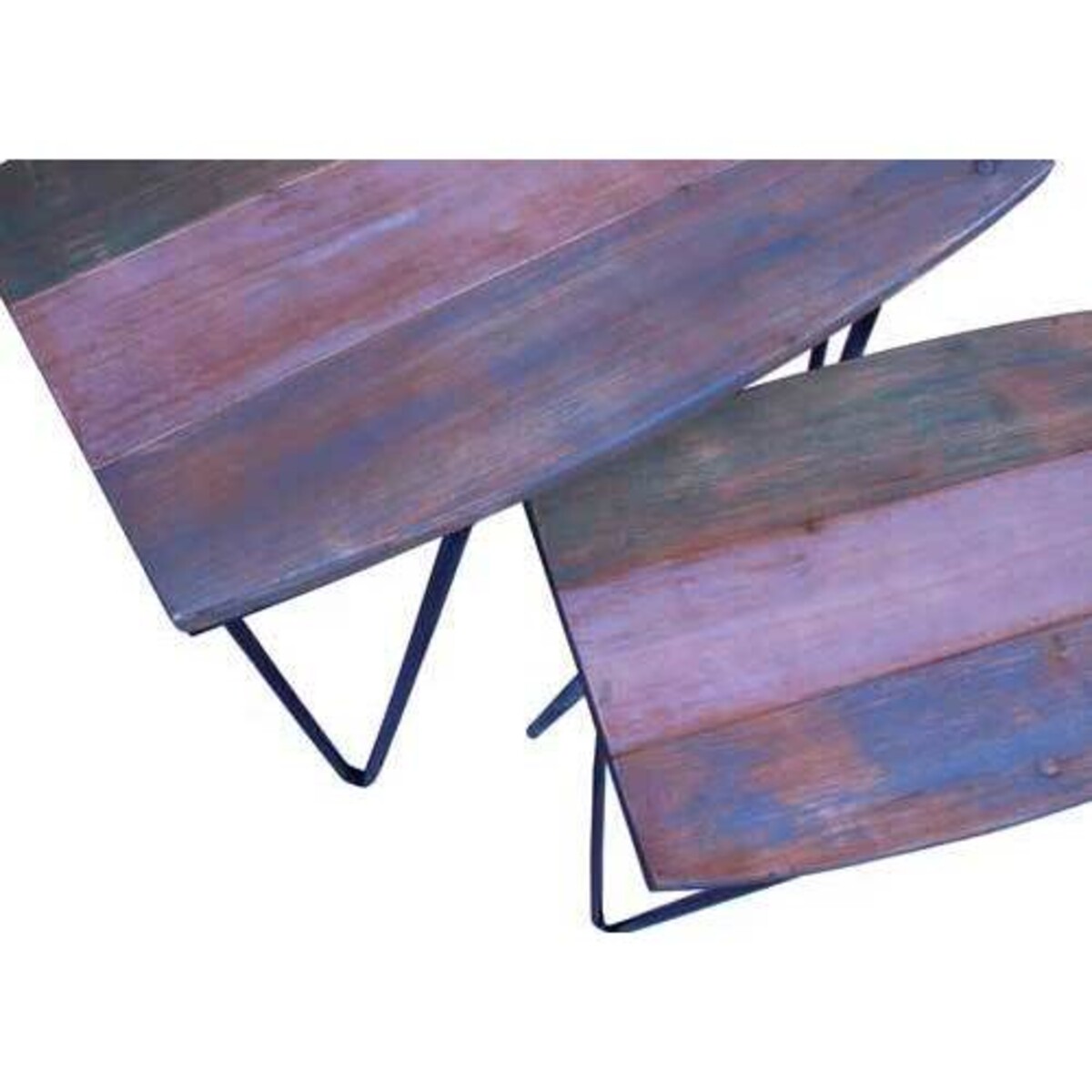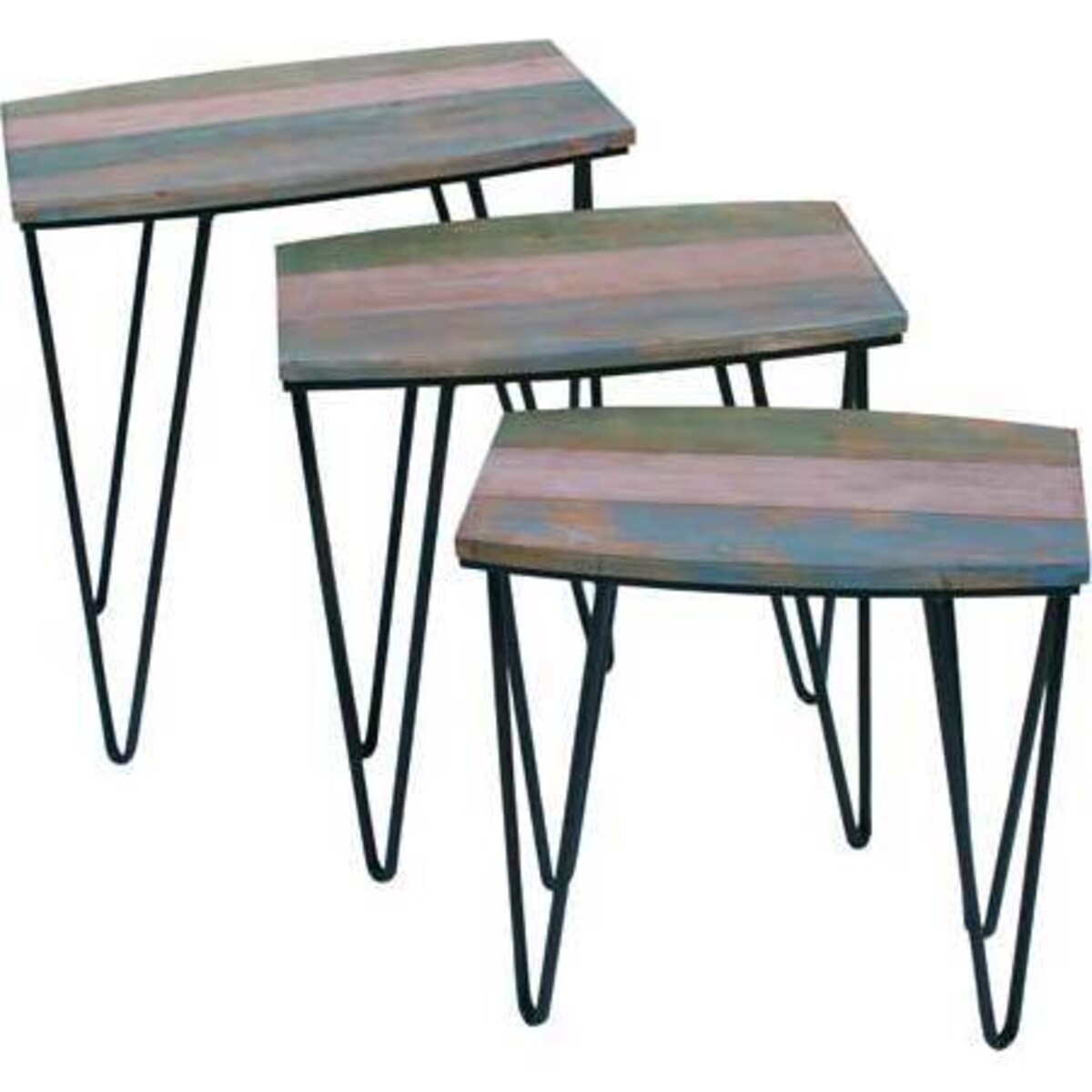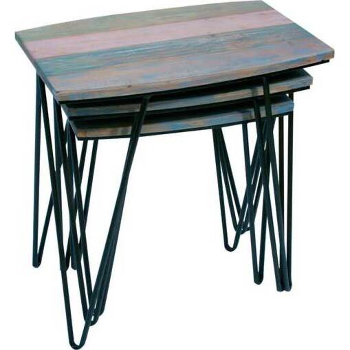 This set of three nesting tables is a great design feat as it has brought many sensibilities into its design. The fact that it can keep three tables under each other which truly helps in saving of space especially when the furniture is idling and there is no get together for which it may be needed. The second fact is the manner in which the metal frame has been designed and worked on and the incredible manner in which the shabby chic design has been incorporated within this, is commendable. Along with that comes the frame of the table that is strong and stable on its feet and the fact that it is lightweight at the same time helps in placing it in different parts of the house as and when needed. One of those extra pieces of furniture that comes in real handy when the guests increase in numbers, or if the get - together moves outdoors. The cheerful and rather rustic charm of this set truly sets it apart from anything one may own at home and thus in a sense this also gives one a tiny bit of decor makeover.