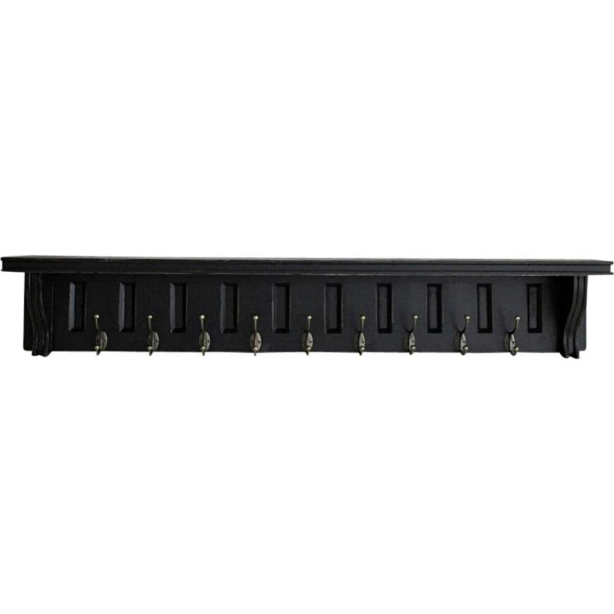 Delight in the fact that with this one single addition in your home, your worry of finding jackets and coats on chair backs or having to see umbrellas and caps sitting atop tables -will certainly not be there. This dark wooden bracket is lined with nine metal made double prong hooks that are made from metal are sturdy and are delightful in appearance because of the overall appeal of its design. The shelf like fat top could be used as well. The length of the bracket is all of 121 cm while its height is 20 cm and its width all of 12 cm. The double pronged hooks come with rounded tips so as to ensure that no fabric placed on it is damaged. The bracket can be placed with ese on the wall as it comes with the necessary design details. Will look stunning in the entryway of your home. To make its appearance all the more attractive, you could place tiny decorative on the top or line up a few greens in tiny ceramic pots.