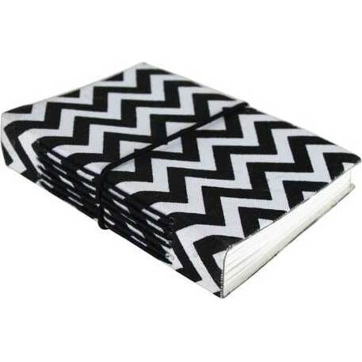 Notebook Chevron Black measures 9x13 cm. It is characterized by chevron prints, which make it appear stunning for any occasion. The zigzag prints are done on white background, making this writing material hard to overlook when lying on a surface within the living room or other place. It comes to the user with a black string tied round about the mid - section. Apart from having a durable canvas covering, Notebook Chevron Black is thick and should give the buyer protracted usage. One can purchase is as a gift for someone who writes regularly for instance or simple for personal use.