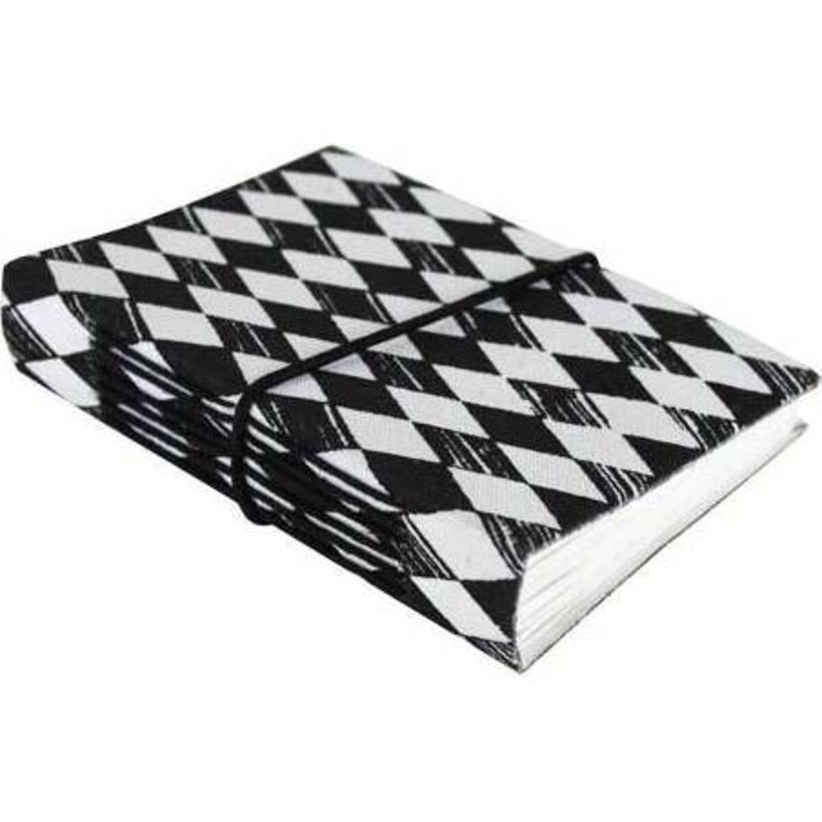 Notebook Diamond Black measures 9x13 cm and features a rim of paper bound together and covered in white canvas with black diamond prints. The thickness of this stationery item affords buyers ability of storing large volumes of information. A string ties around the middle part of this notebook, ready for the user to pen down different thoughts on it. This item can look great resting on top of a shelf within the living room when not in use. Notebook Diamond Black is an ideal product for any writer, scholar or professional to have in the car, drawer, shelf or other suitable location for easy access when needed.