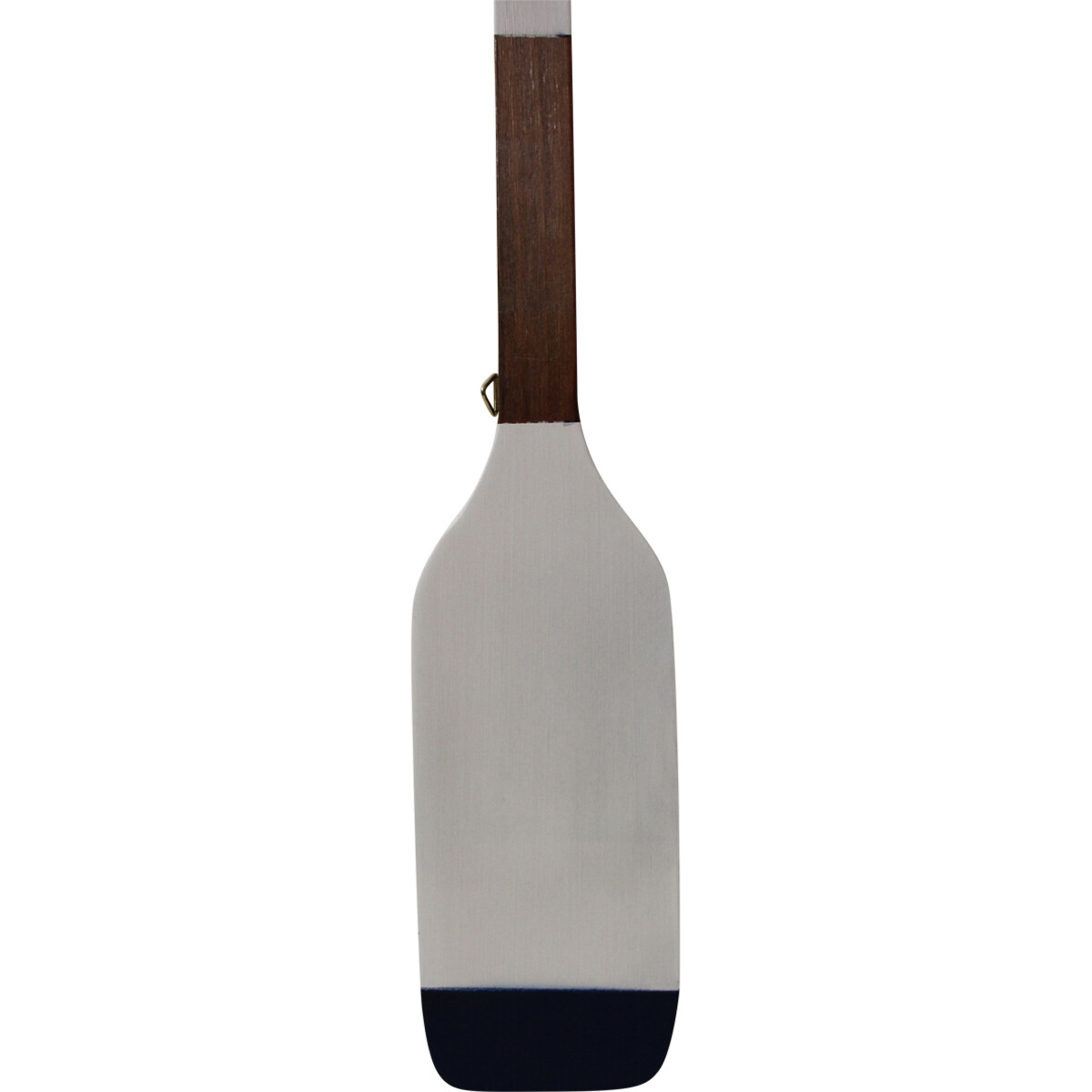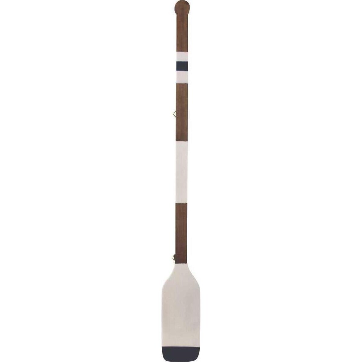 Warm up your interiors with the coolest of nautical accessories that add a touch of rustic charm with their presence. This 10 cm long oar comes with hand painted details that lend it colour and a vibrant kind of presence. The white and navy coloured oar has a stark white portion that makes its presence fresh and vibrant while the navy blue lifts up its colour combination to a new kind of high. The delightfully different kind of inclusion in your space gives more alignment to your marine and nautical themed home. The wonderful manner in which the rustic element in the oar creates a fresh kind of natural feel is wat makes it presence so undue. The colour combination too has been kept understated. solid timber fir wood oar that has been hand made by expert wood craftsman and them given this paint job makes it a truly refreshing change from the more formal kinds of looks rest of your spaces may be wearing - a treat for all in love with nature and the seaside.