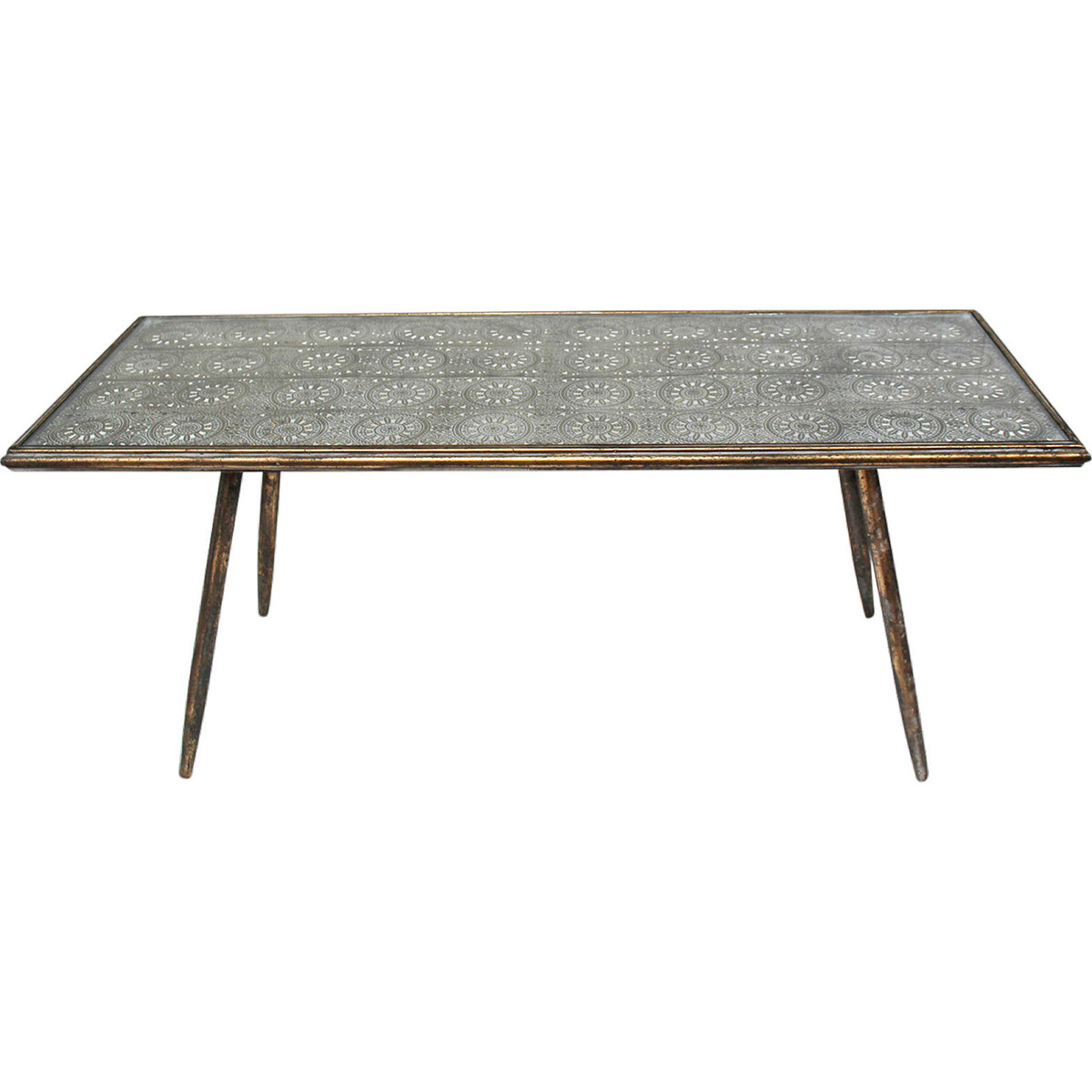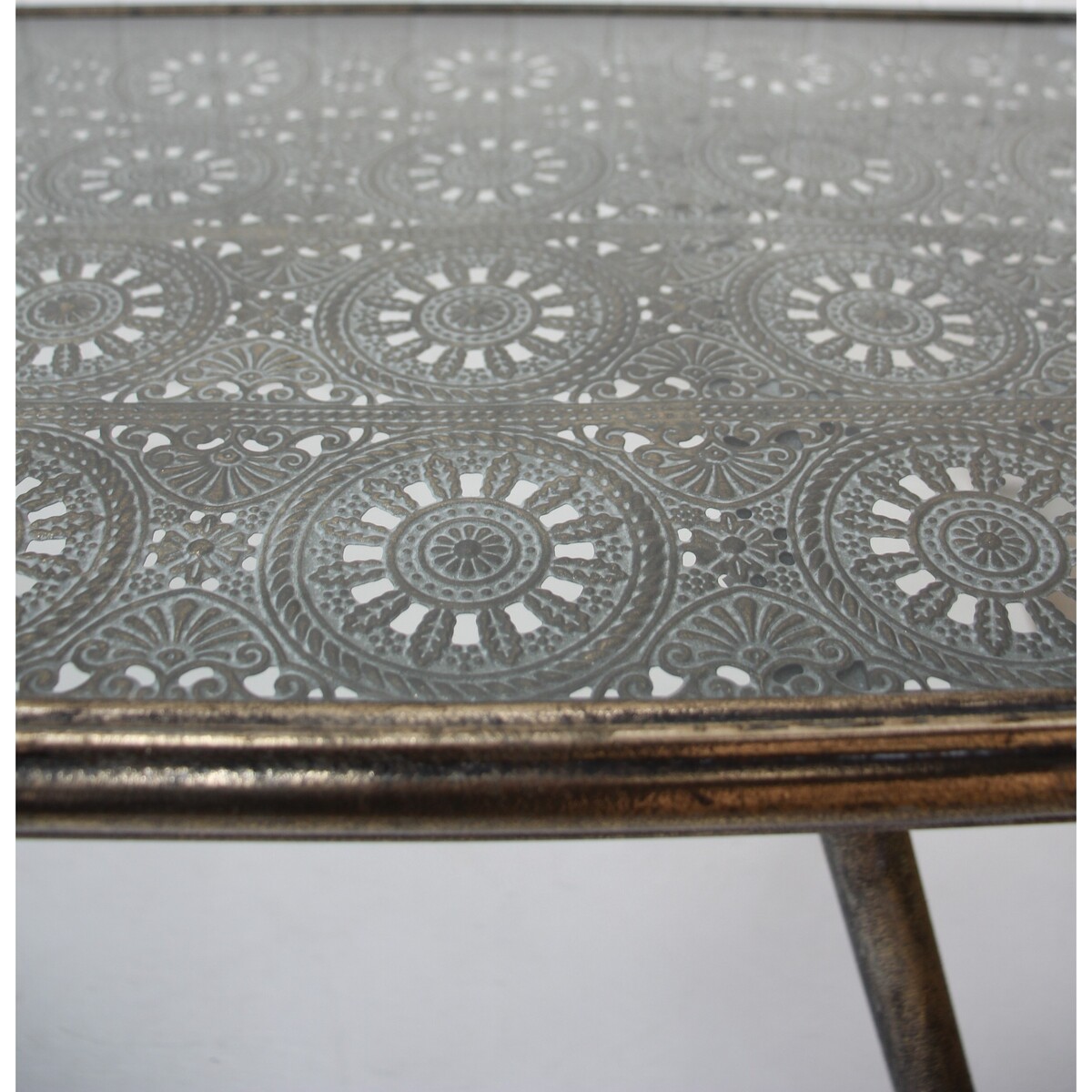 The Occasional Table Hassan Glass is made of a brilliant combination of two long lasting materials - metal and glass. It is often considered prestigious to have one's home or office decorated by quality mahogany trees. This is why this magnificent table was crafted with such unparalleled ingenuity which gives this table a look of grandeur. The table stands on four sturdy metallic legs which measures 44 centimetres in height. Sitting on top of these stands is a 108 centimetres long ornately patterned thick glass encased within a metallic frame which shines with a polish. It would make a perfect living room centrepiece and would also be suitable for official purposes such as in conferences.