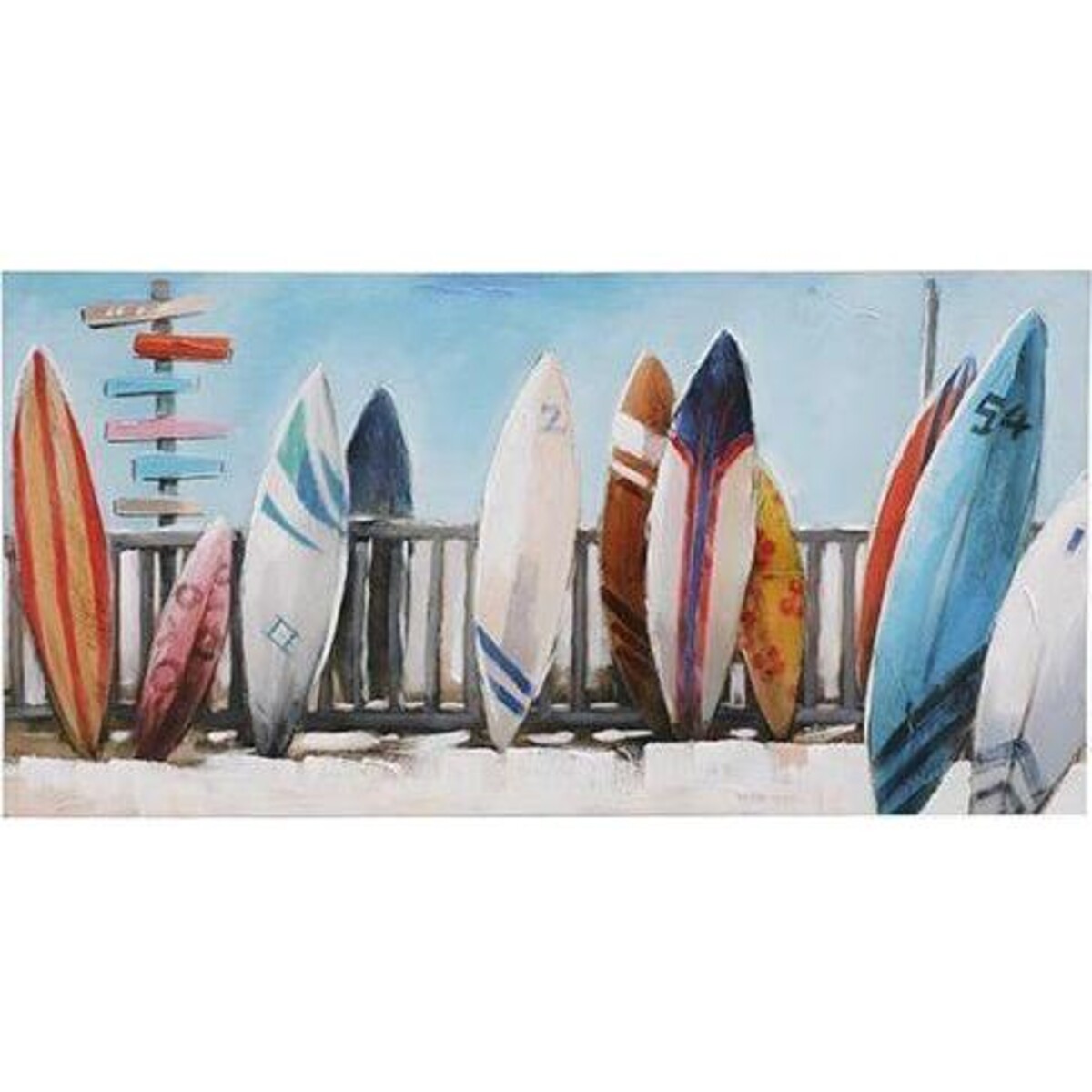Play around with these affordable art pieces for your home, because Lavida understands that art needs to blend in not just with the thematic of modern homes but needs to lend it more credibility in terms of quality and affordability - and in this case the art is superb value for money. About 120 cm wide and 60 cm high, it showcases the wait for excitement as the surf is building up and while we may not see the sea at all in the canvas, the palpable excitement is felt - as if the artist will raise his eyes beyond and make us see its beauty. The colourful surfboards add so much fun and liveliness to the piece and wherever this canvas is placed it will bring in the same kind of colourful escape from boredom. The oil on canvas is one among the series that artists from Lavida have created especially for homes that love art to reflect their love for the seaside.