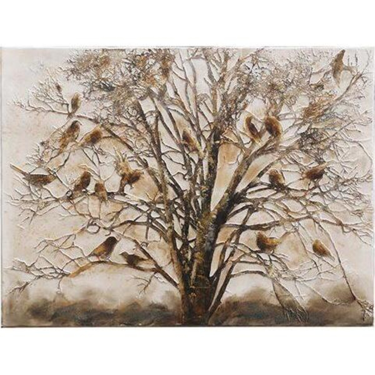 An artistic reaction that is as sublime as it is vivid, as filled with the energy that life and living creatures can bring, as it is filled with a certain peace giving passivity - and all of that comes from the manner in which the tree of life with its numerous birds are wanting to convey - a beautiful rendition of delicate artwork , that makes use of shades and hues of the same colour, yet brings out the definition of form flawlessly.