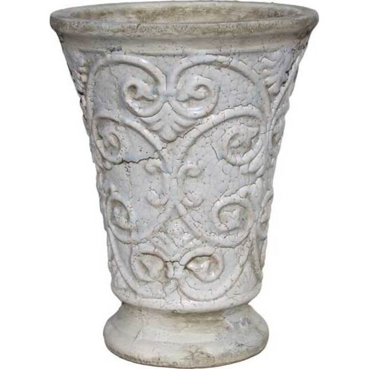 The cream-coloured stone-inspired pot features a swirled design that is anything but ordinary. It's worn to give it a weathered and well-loved appearance. With intentional and strategically placed cracks in the outermost part of its exterior, this pot looks like something you found on the shelf of an antique store, except you don't have to pay the high price tag that often comes with such pieces. It's just as perfect to use on your kitchen table as it is on your front porch. Everyone will think this pot is an authentic antique, but don't worry, we'll keep your secret.