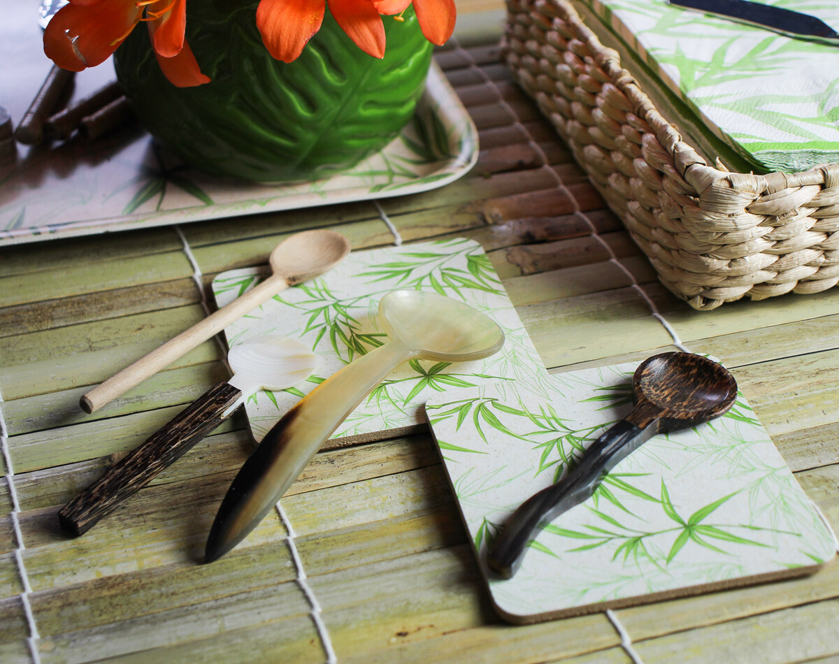 Consisting of four spoons all of which differ in size, shape and colour except in material component, these spoons were specifically made to add that much desired decorative touch to your customers' spatial environments. With each having been painted in different glossy palette, the smallest of all four measures just 10 centimetres in height, the medium sized version on the other hand measure 11 centimetres in height. Also, the large sized variant measures 12 centimetres in height while the extra-large version, being the largest of all four measures 14 centimetres in height.