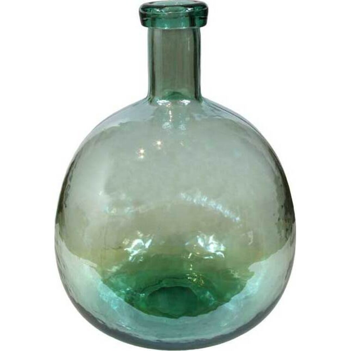 This medium-sized glass bottle features a round body with a thin neck that forms to a lip at the top. The green colour of the piece can add a subtle touch of colour to even the smallest spaces, and while the bottle can be used for its intended purpose as a decorative piece, it can also do double duty as a serving bottle. As it has no cap, it wouldn't be ideal for storing liquids, but you can use it for serving cold drinks during a meal, after which, it can go right back to being a lovely piece of d?©cor.