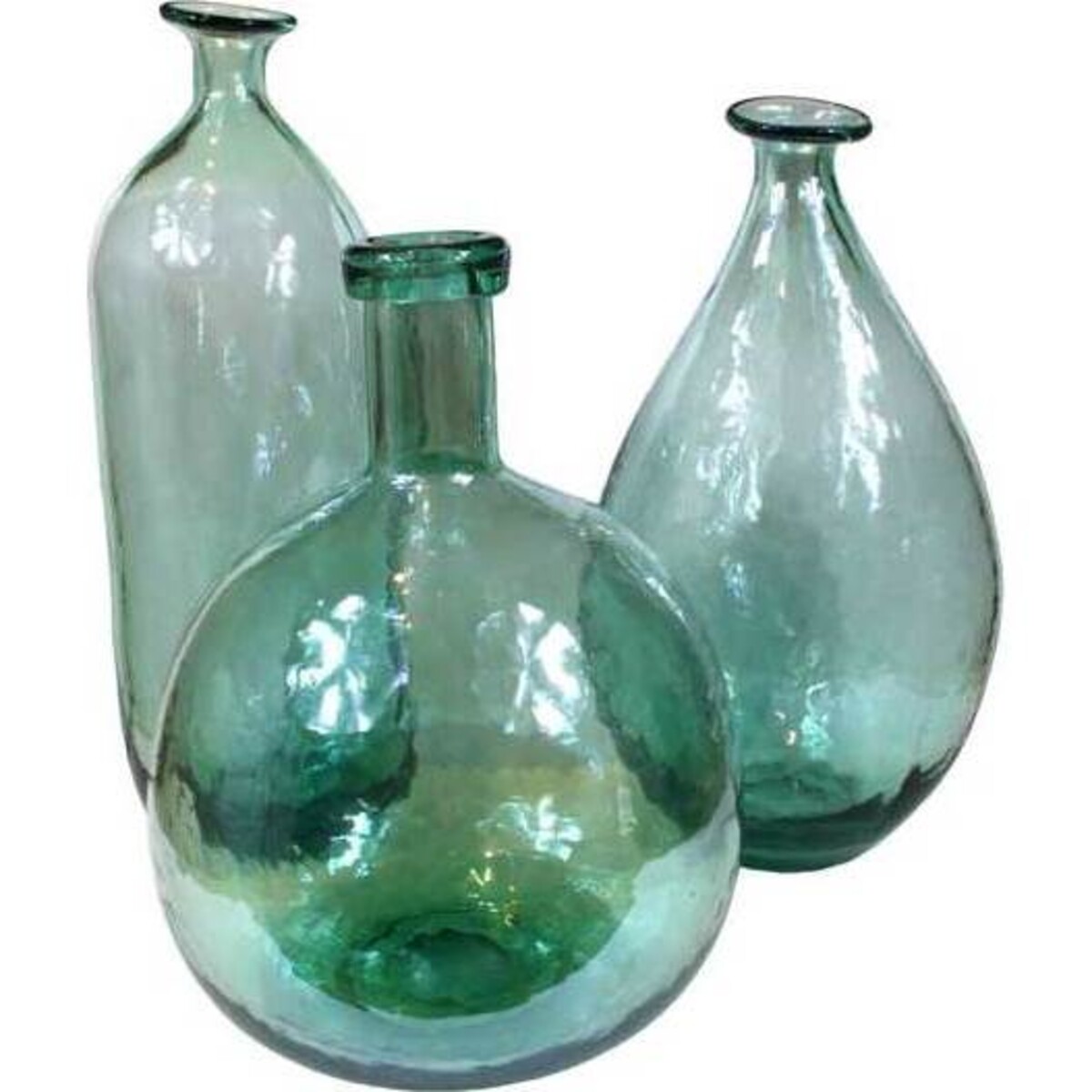 With their teardrop base, these glass bottles feature a gray green colouring and a slanted lip at the top. They're ideal to use as decorative pieces around your home whether you're using them to hold up books on the bookshelf or placing them in your bathroom to add a little colour. You can even fill them with sand and tiny shells from a recent beach trip to create a little memento. These glass bottles are also excellent to use as serving pieces for cold beverages, just expect them to get a lot of notice from your guests.