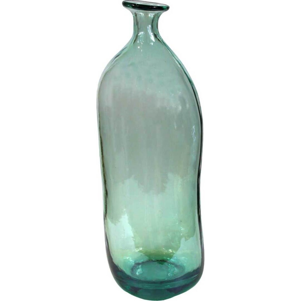 This glass bottle features a tall rippled body, an angled lip, narrow neck, and a fabulous blue green colouring. While it's ideal to display as is, you can also use it as a serving piece for cold beverages or place long stemmed flowers in it and use it as a vase. Whether you place these glass bottles on either end of a mantle or line them up on a counter, they're going to be a wonderful addition to your space and will certainly demand attention.