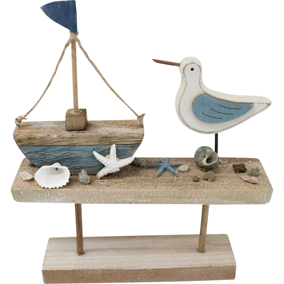 This wood and metal ornament is an eye-catching piece inspired by the natural sea surroundings. This coastal accent entreats a fuzzy feeling inside. For a refined flair, immerse the entire hallways into the depths of natural sea habitats. Ornament Boat/Seagull is an excellent upgrade for window display. It fits on the console table juxtaposed with planters and trinket boxes. The beauty of the seagull makes it apposite to enthral one's hallways into the depth and richness of the seagull. The best part is both the wood and metal materials are sustainable.