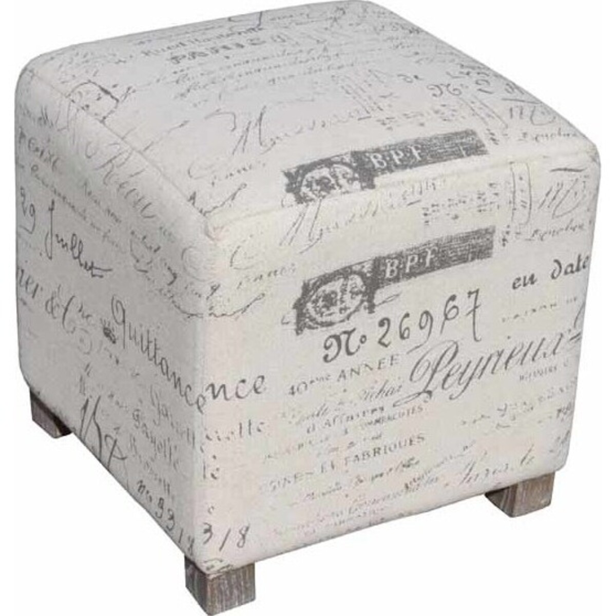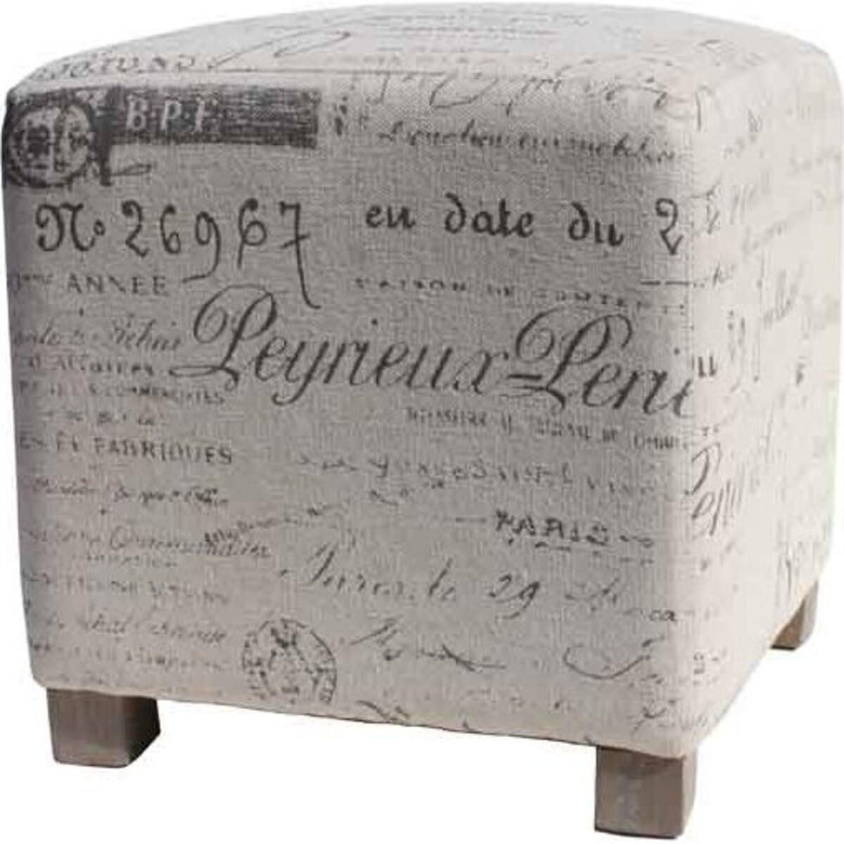 The Ottoman Reim is square in shape, the chic and modern style very evident. It has chunky wooden legs, painted in black and just a few centimeters high. Those bits of the legs are the only parts not upholstered are the legs which add to the modern twist of the design. The seat of the ottoman is made comfy with thick and soft material under the upholstery. Its covering is a light grey - almost dirty white - fabric. It is then printed with darker grey and black scrawls, signatures, date, stamps which are all in French. The chair is an ideal accent in any room - whether it is modern in style or slightly classical in interior design. It complements the Chair - Loui Script very well which is also available in the site.