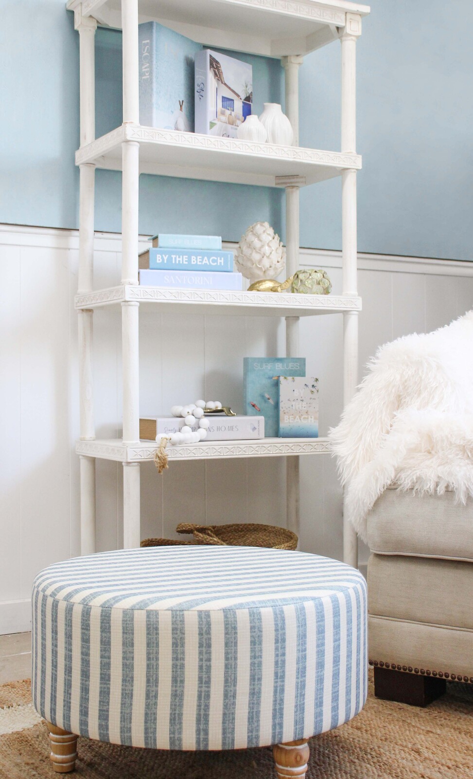 This Ottoman South Hampton is a gorgeous piece that we think will appeal to many customers looking for a calming, coastal touch in their homes. The classic blue and white striped linen really stands out and works in so many settings – it looks just as good in a casual living room as it does in a bright entryway or waiting room. This one is solidly made, too. The 60x60x36cm size sits perfectly under a large window or beside an armchair for extra seating - or simply as a statement coffee table with books or a tray on top. We’ve found the warm wood legs are sturdy (MDF/wood construction), but they soften things up visually at the same time. And it’s not tricky to style either, which is important for customers who want that sort of breezy, easy-to-change-up look in their homes. It does have that crisp, fresh feel we see everywhere in relaxed Hamptons-style interiors, but with just enough punch for modern spaces too. We’ve found it pairs beautifully with other natural tones and would work well with lighter neutrals or deeper blues. But honestly - could go right beside a potted palm too. This piece is a bit of an all-rounder – use it for extra seating, resting tired feet, or serving drinks. We think it’s a great way to add comfort and style to any space without making things feel cramped or fussy. Even one or two of these in store are sure to catch some attention and get people thinking about how they can tie together their own interiors at home.