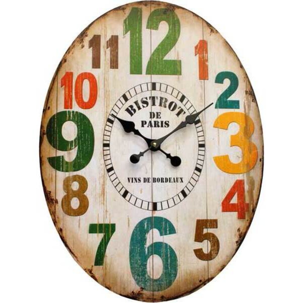 This clock has deeply French influence on its features. Right from the shabby chic paint effect on the face to the very colourful and delightful set of hours painted in a variety of solid colours makes it amply interesting. The words printed on it say-Bistrot De Paris- and the hands of the clock in black stand out with their bold black colour. Seeing time on it will be clearly visible from a distance. The height of the clock is 58 cm while its width is 43 cm. Made of MDF the clock will look stunning in any space of the house, be it the children's room, the dining space, the study or your bedroom. The gorgeous design detail will add more charm and a period look to the wall. Despite its antiquated look, the functioning of the clock is accurate and the mechanism within as modern and as accurate as it can get. A great means to lend a fun and cheery look to your spaces.